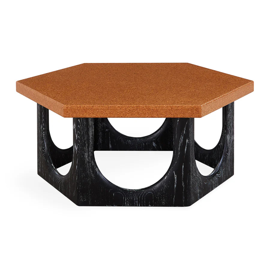 Bordsskivor i kork – naturliga, slitstarka och överraskande – vilar på bas av eboniserad och trådborstad ek. Adlers signaturmönster med valvbågar är en modern hyllning till Colosseums arkitektur och Oscar Niemeyers Brasília. Visa upp din smakfulla stil med dagens och framtidens “It”-material – kork – och de stilrena och självsäkra formerna hos soffbordet Coliseum.