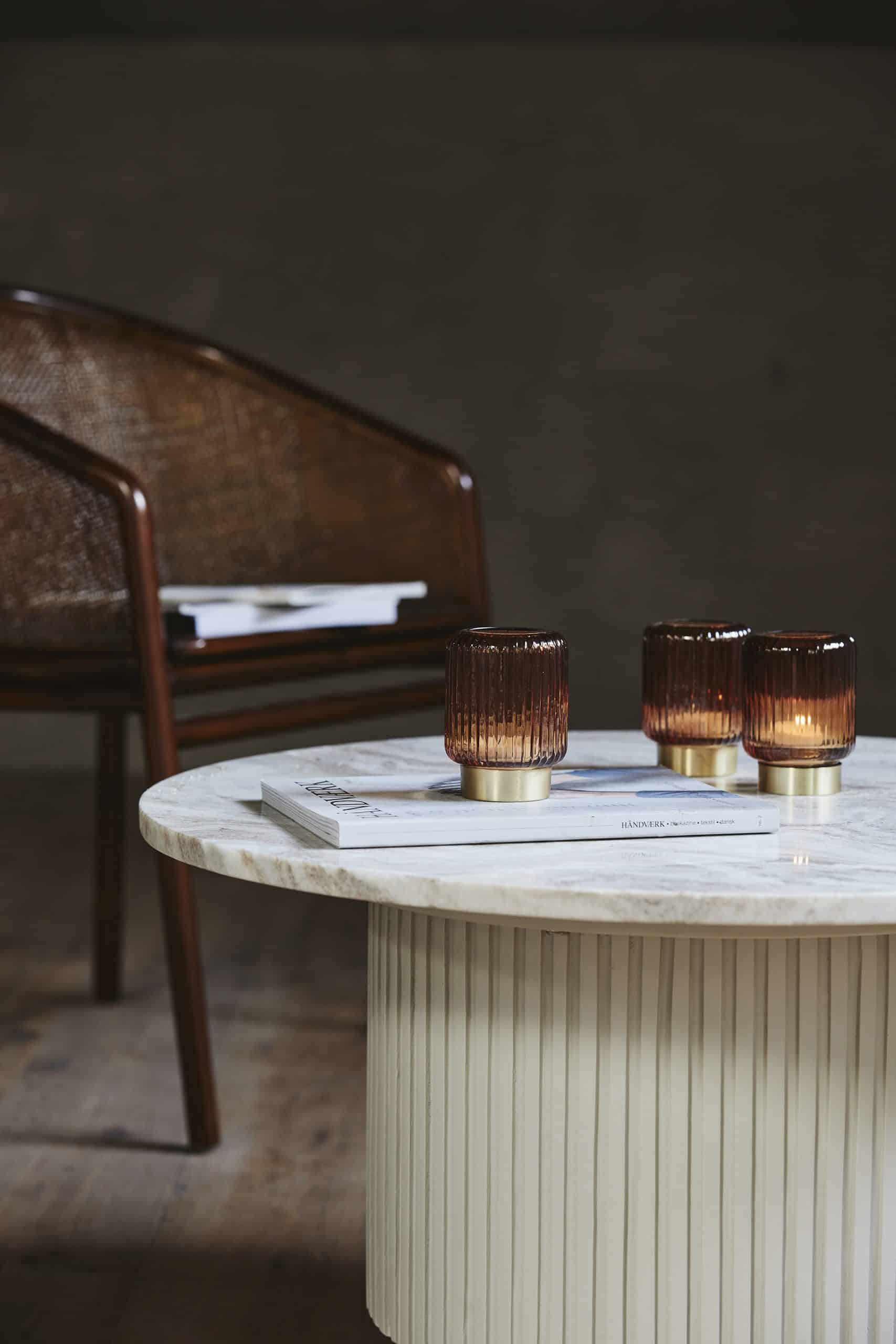 Erie är ett mycket läckert och modernt men ändå tidlöst soffbord med vertikala spår på basen tillverkad i trä toppad med skiva i marmor. Uppgradera ditt vardagsrum med denna skönhet som även finns som middagsbord och sidobord. Ska rengöras med en fuktig trasa och mild tvål.