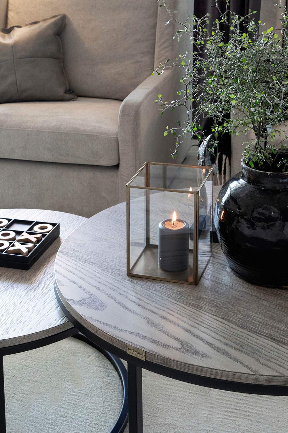 Ett stilrent och snyggt soffbord i set om två med underrede i lackad metall och skiva i lackad ekfanér. Ett stilrent, tidlöst och klassiskt soffbord i sina två delar som blir väldigt praktiskt.