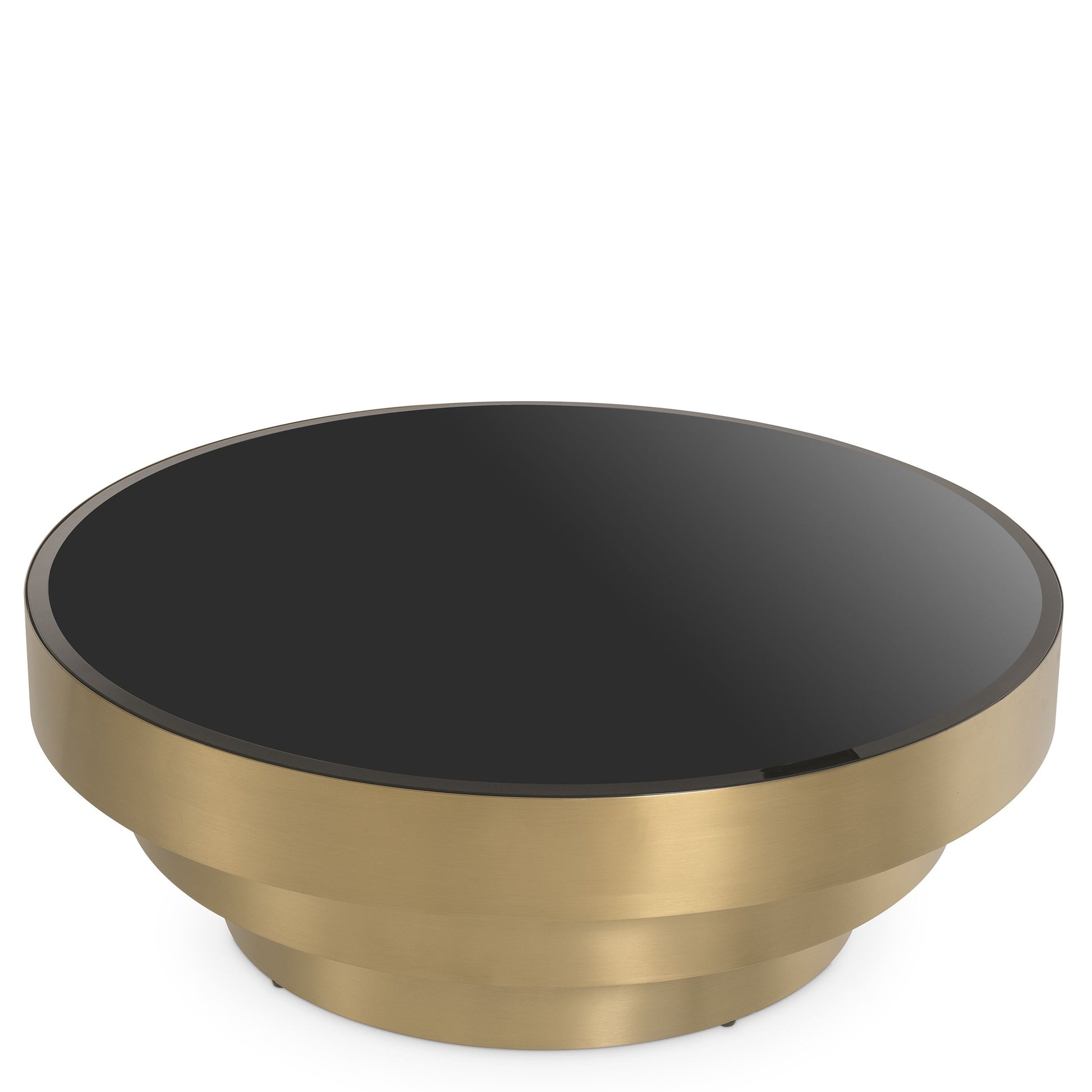 Soffbord Sinclair från Eichholtz är ett mycket härligt, läckert och exklusivt bord med underbar borstad mässingsfinish, toppat med svart glas som kantslipats för den sista lilla detaljen. Ett mycket ståtligt bord som lyfter inredningen och känns sofistikerat och samtidigt modernt.