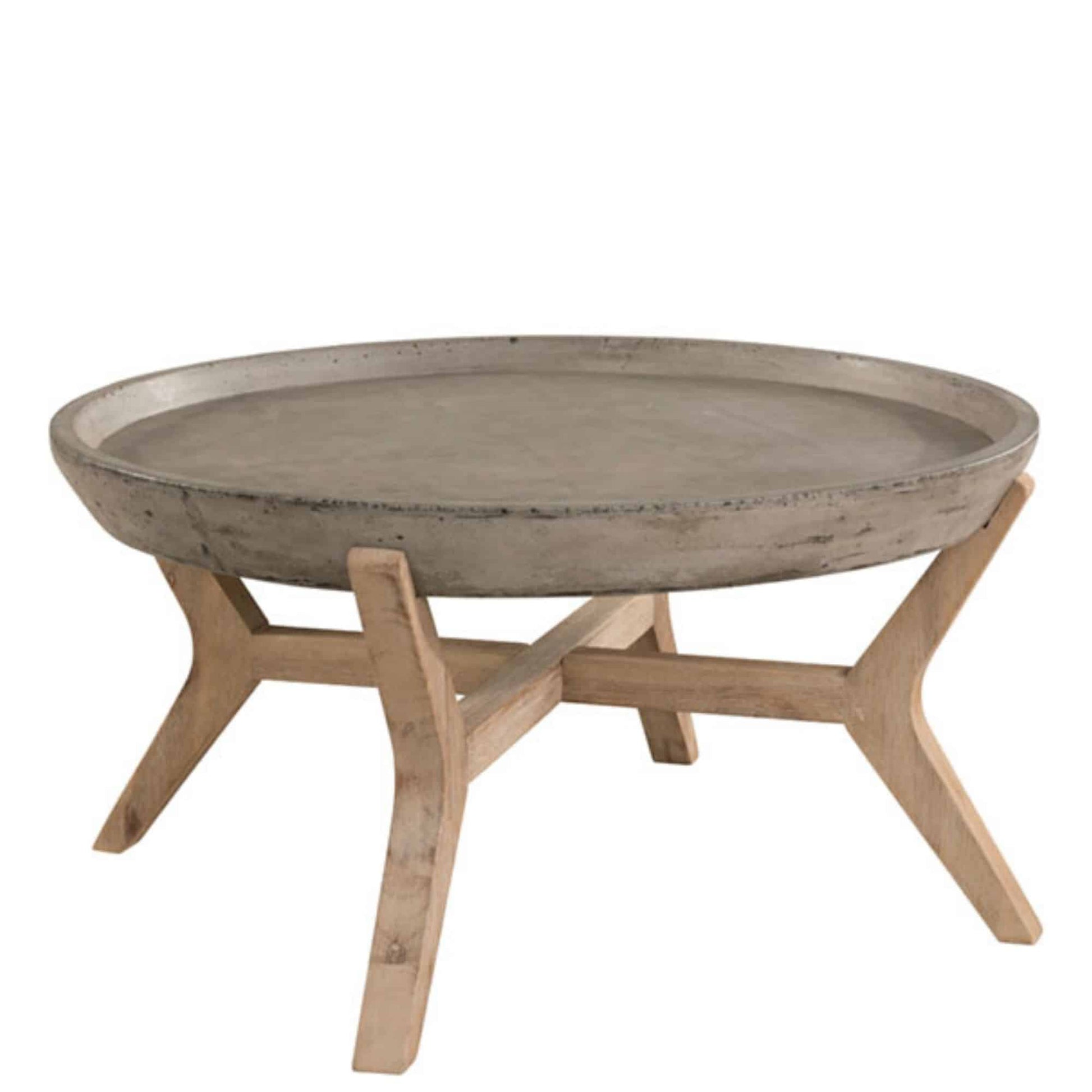 Ett mycket robust och rustikt bord i betong med waxad yta och underrede i Acacia.