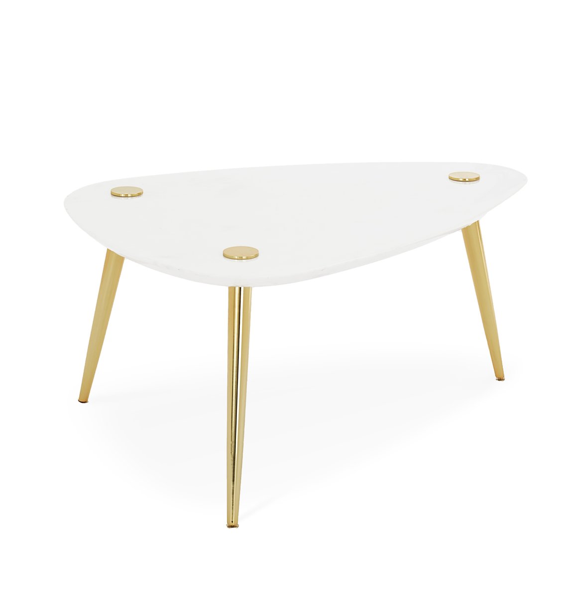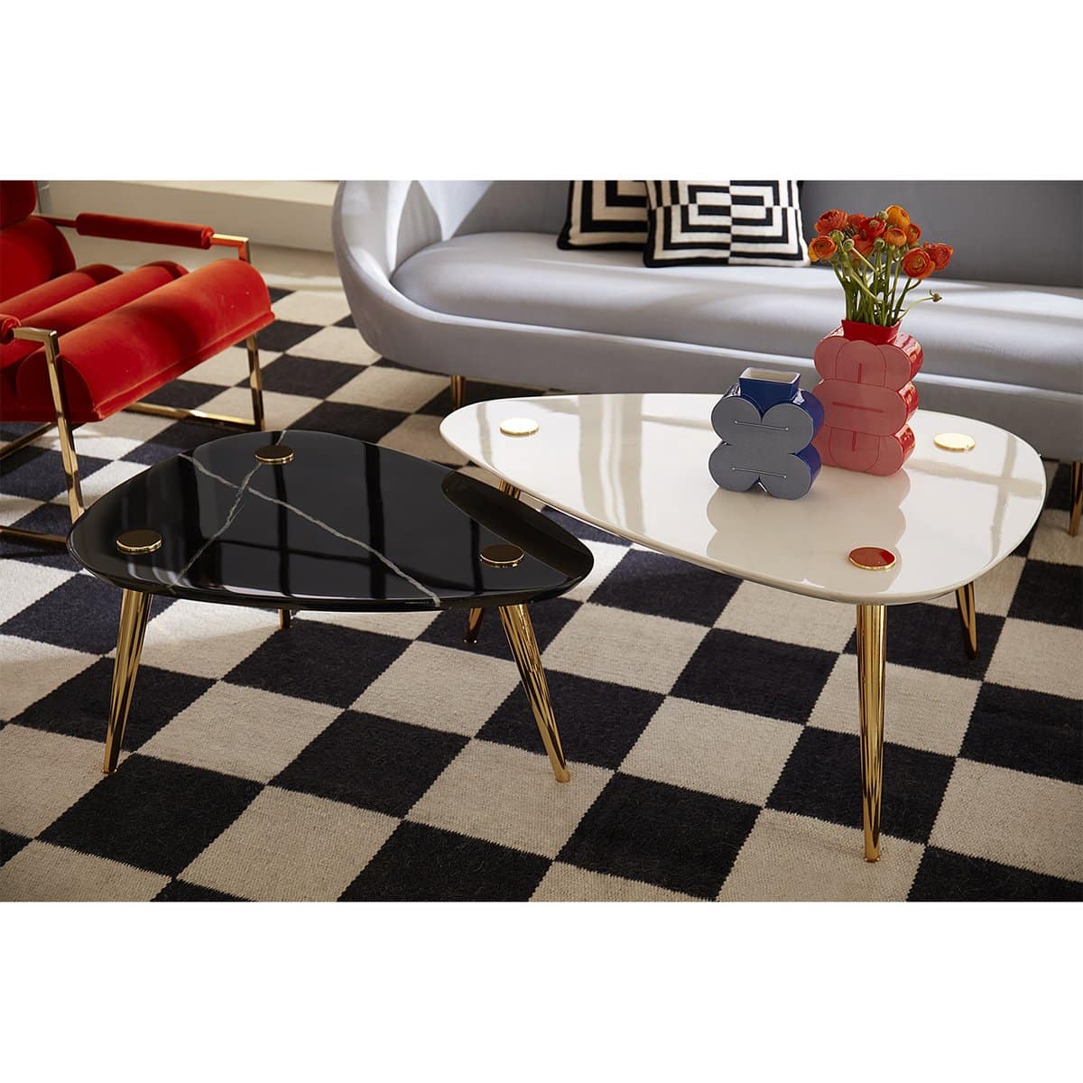 Curved marble tabletops on polished brass legs, our triangle tables are chic classics that complement both minimalist and maximalist styles. Dynamic on their own, as a duo they’re designed to mingle—tuck the small black table neatly beneath the large white version to create new shapes.