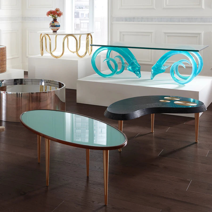Detta bord balanserar form och funktion perfekt och är den ideala följeslagaren till en ståtlig soffa. Med sin lekfulla och samtidigt eleganta närvaro förvandlar det enkelt vilket rum som helst till en stilfull oas.