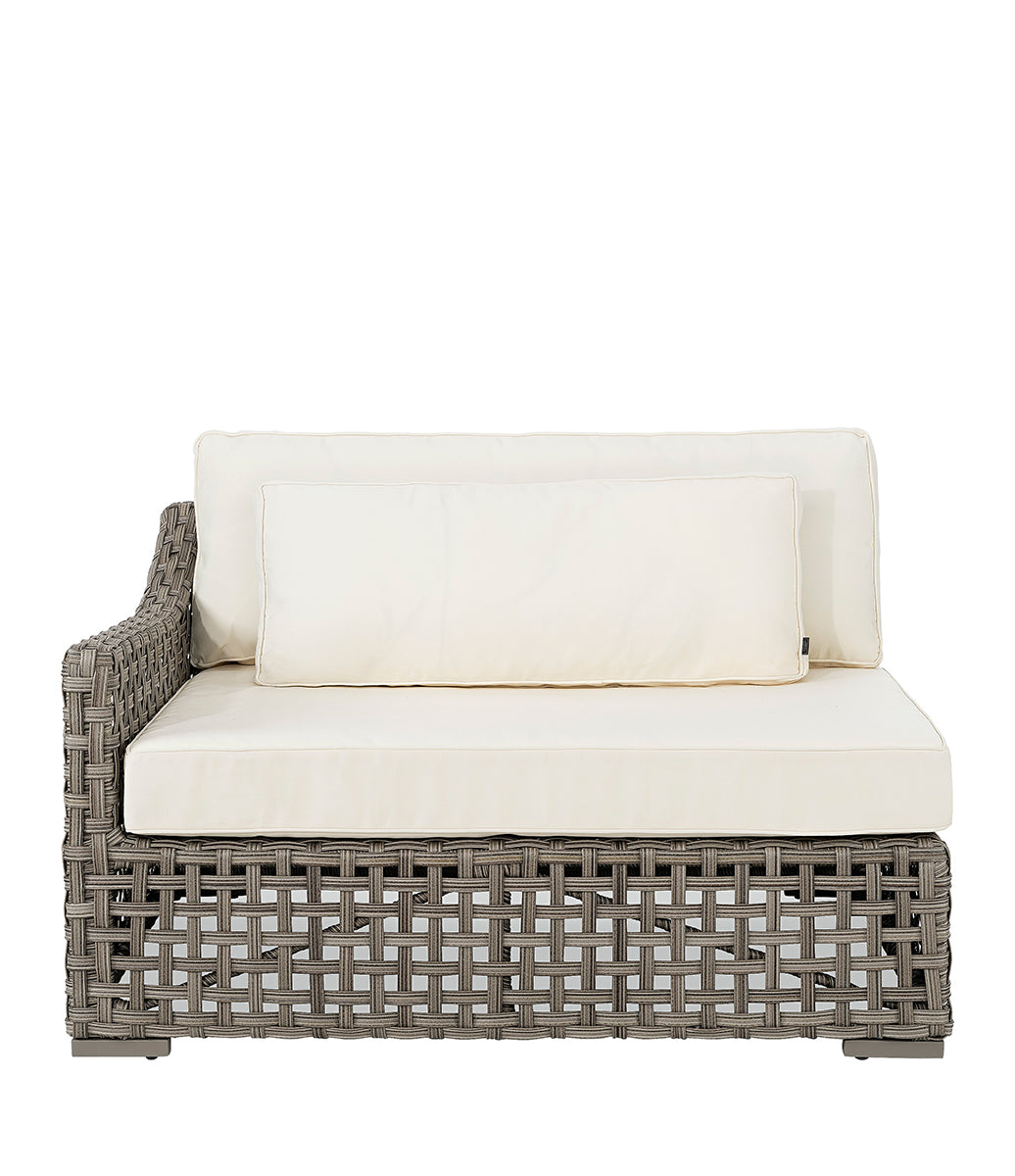 Skapa en elegant och avslappnad utomhusmiljö med modulsoffan San Remo från Artwood. Denna flexibla soffa är tillverkad av hållbar, handflätad konstrotting, vilket ger en exklusiv och tidlös design som passar perfekt på altanen, i trädgården eller i uterummet. Sittdynor tillverkade av polyester med avtagbar klädsel i färgen off-white inkluderas.