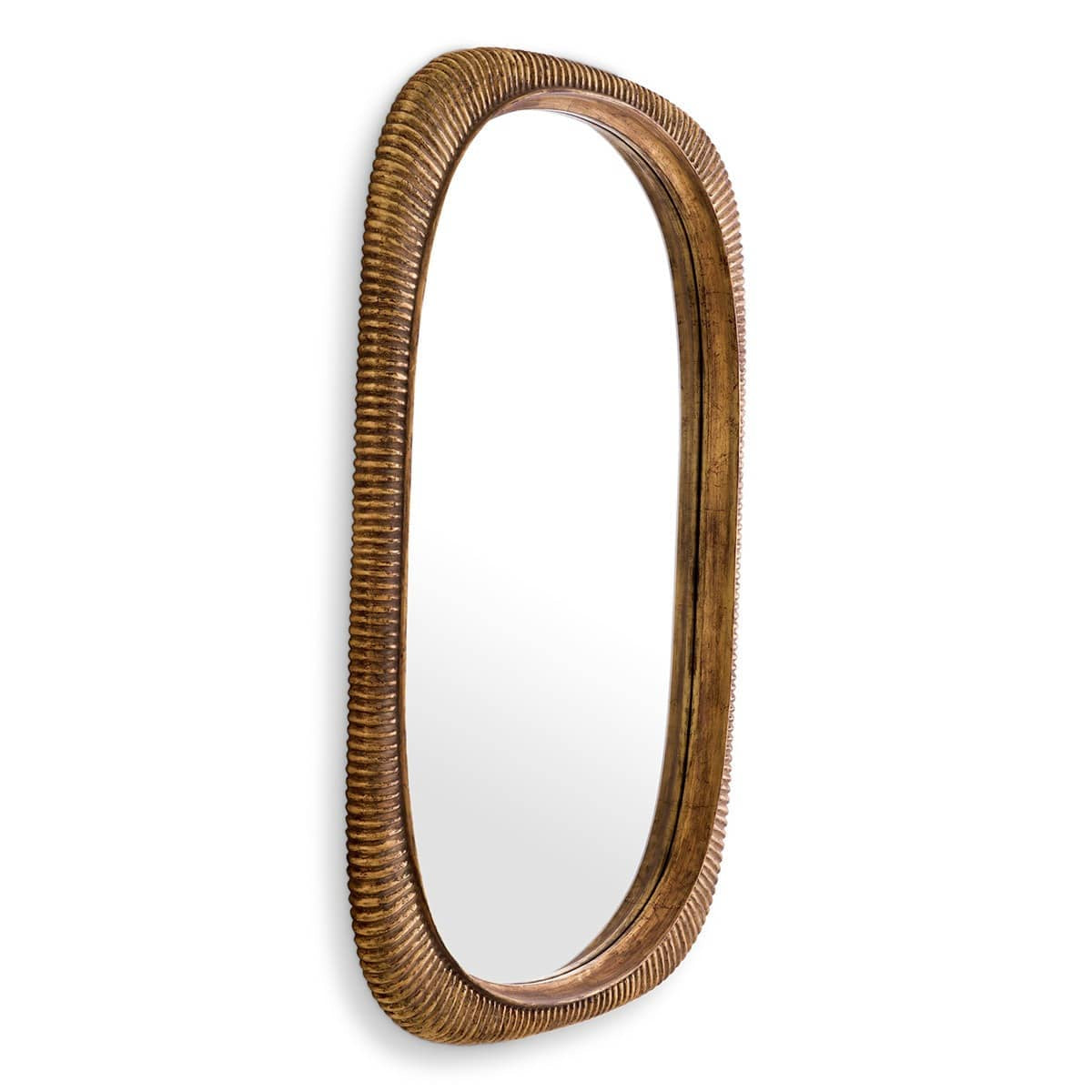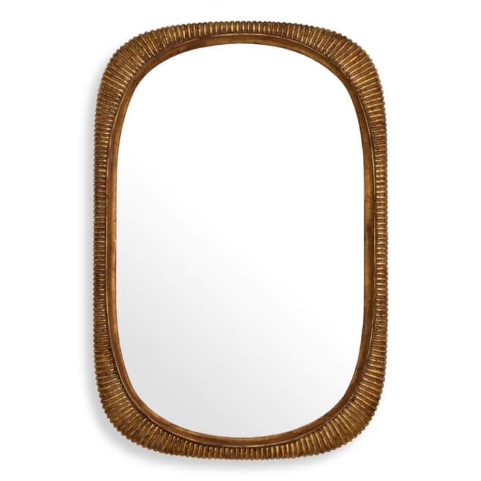 Den räfflade ramen på Mirror Casimir är skickligt handskuren från mahognyträ och försedd med en antik, gyllene finish. Ramens utsida är rektangulär med rundade hörn, medan insidan har en oval form. Med sin distinkta design kommer denna underbara accentsspegel att ge en touch av chic stil till din interiör.