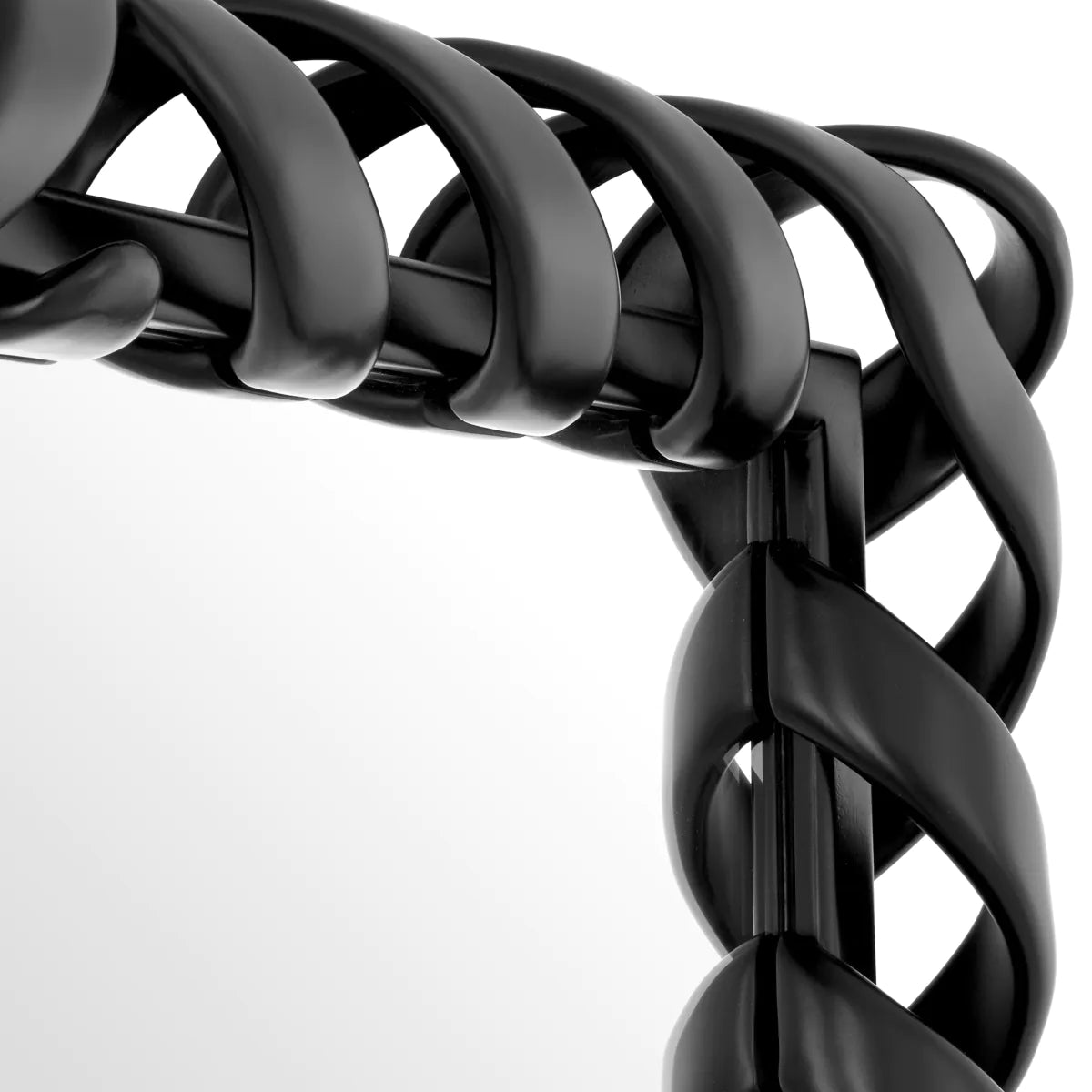 Upplev den tidlösa elegansen hos Eichholtz spegel Casone. Detta lyxiga verk, handgjort i trä och och försett med en piano-svart finish, speglar den noggranna uppmärksamheten på detaljer som Eichholtz är känd för. Spegelns unika repvridna ram och intrikata snidade detaljer utstrålar lyx.