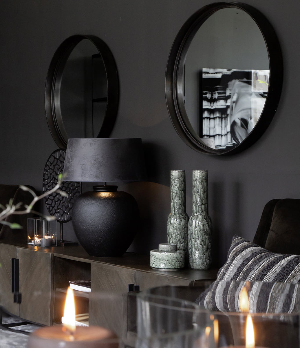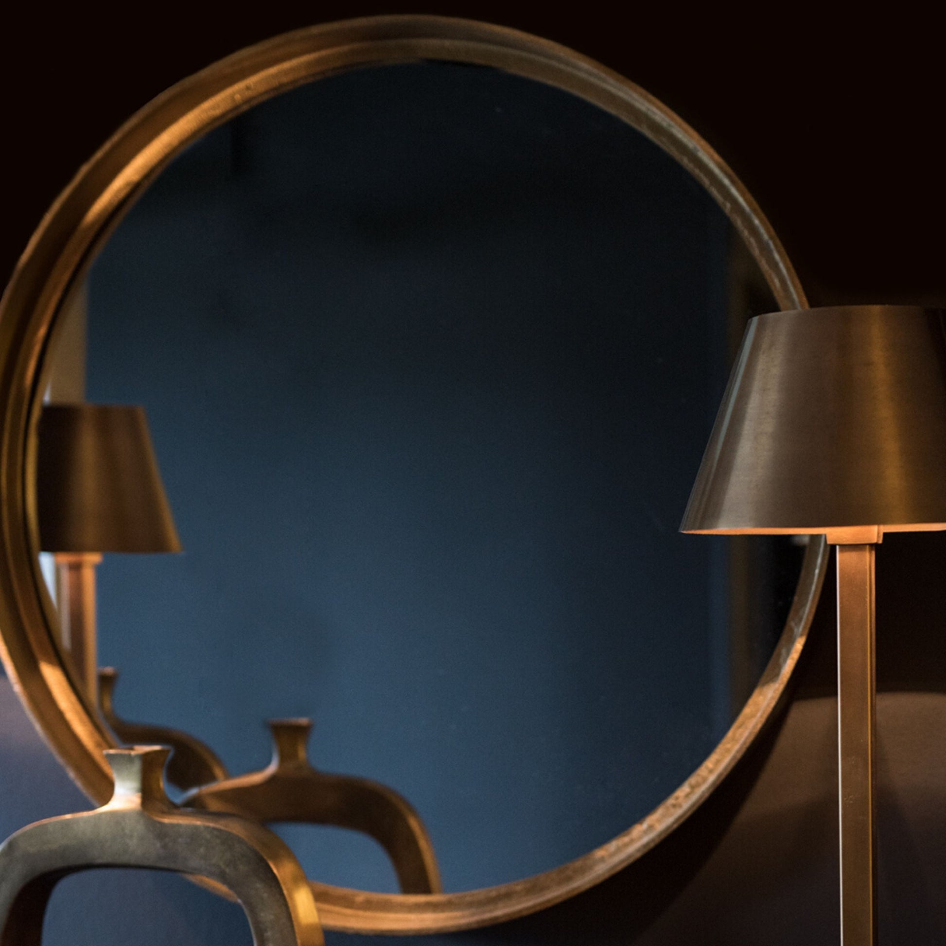 En rund spegel med en metallram. Den tidlösa designen passar lika bra i moderna som klassiska miljöer och reflekterar ljus för att skapa en känsla av rymd i vilket rum som helst. Perfekt för vardagsrum, sovrum eller hall.