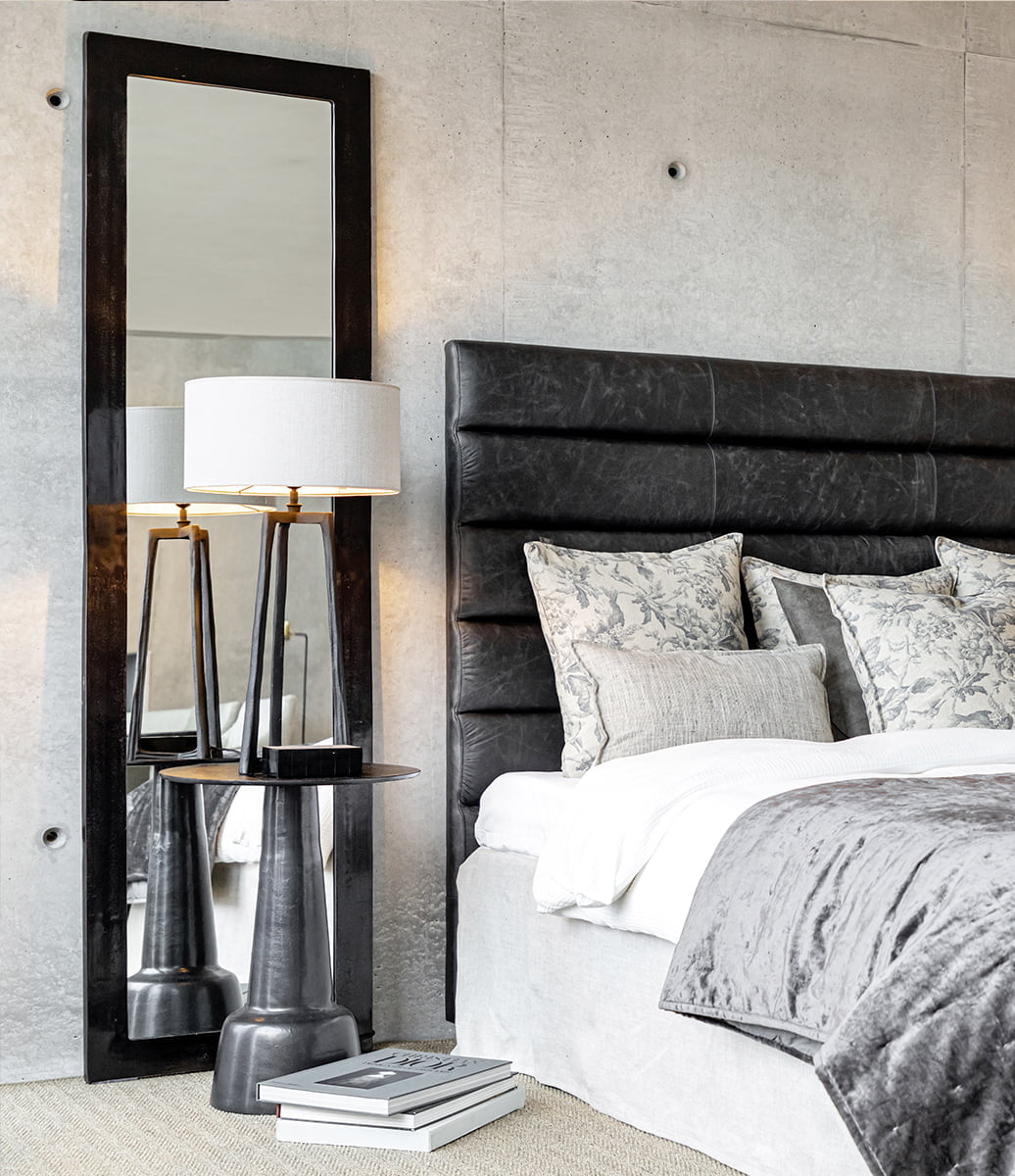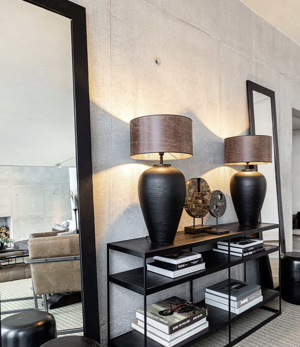 En stilfull och elegant väggspegel med ram i aluminium som fått ett finish i svart eller vintage mässing. En spegel som höjer inredningen flera steg.