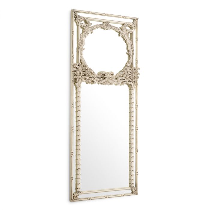 Spegelns intrikata detaljer och eleganta palmdekorationer, ger en touch av sofistikering och kunglighet till vilket vardagsrum som helst. Spegeln är toppad med en lyxig antikvit yta, som ger en varm och inbjudande glans. Spegeln Le Royal kommer att lägga till en touch av charm och grace till vilket interiör som helst.