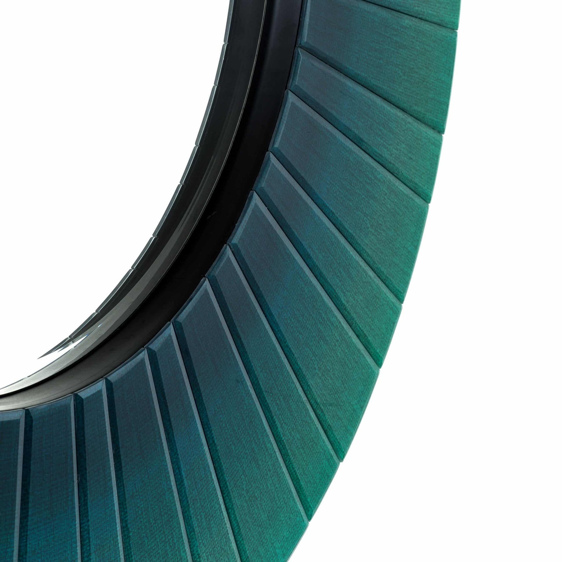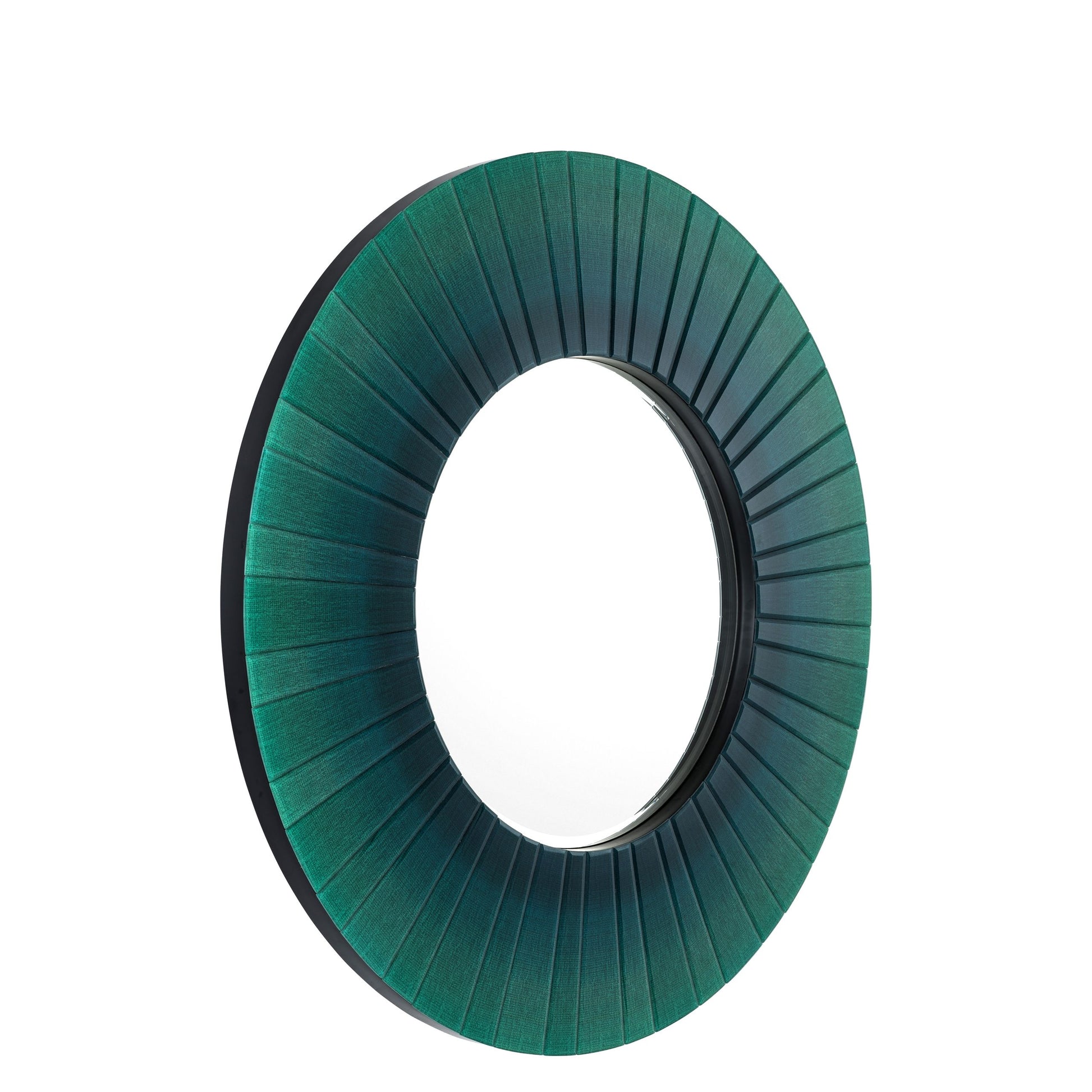 En tidlös och mycket härlig väggspegel med ram i smaragdgrön färg och en läcker konvex (utåtbuktande) spegel i mitten.