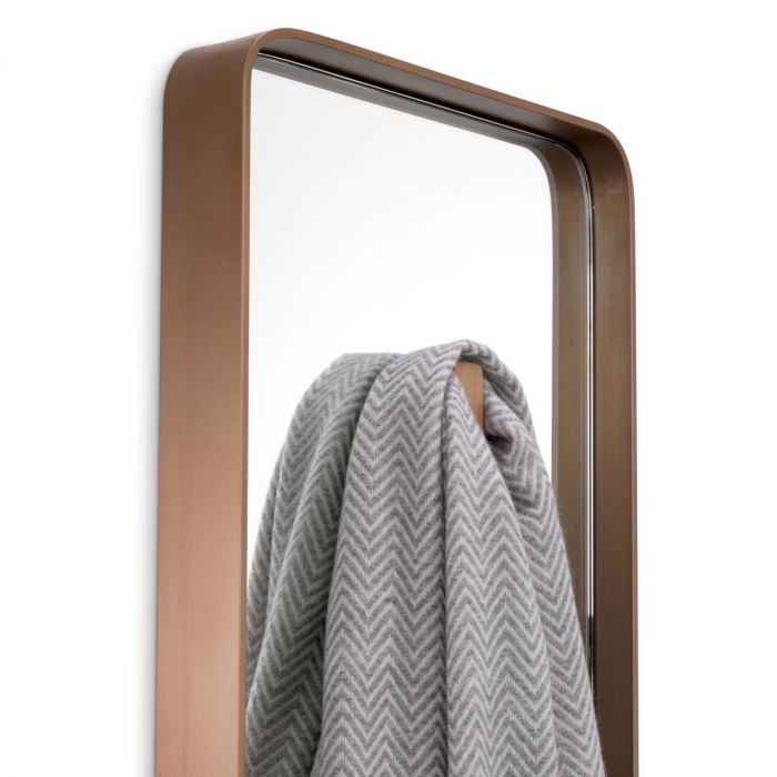 Låt glasets natur förvandla din lilla yta till ett större rum med spegel Megaro. Med en krokhängare för lättare plagg som sjalar, skapar den borstade mässingsfinishen en modern estetik. Ett vackert tillskott till din interiör, designat för att hänga smidigt mot en ofta använd vägg, är spegeln Megaro både en praktisk och dekorativ inredningsdetalj.
