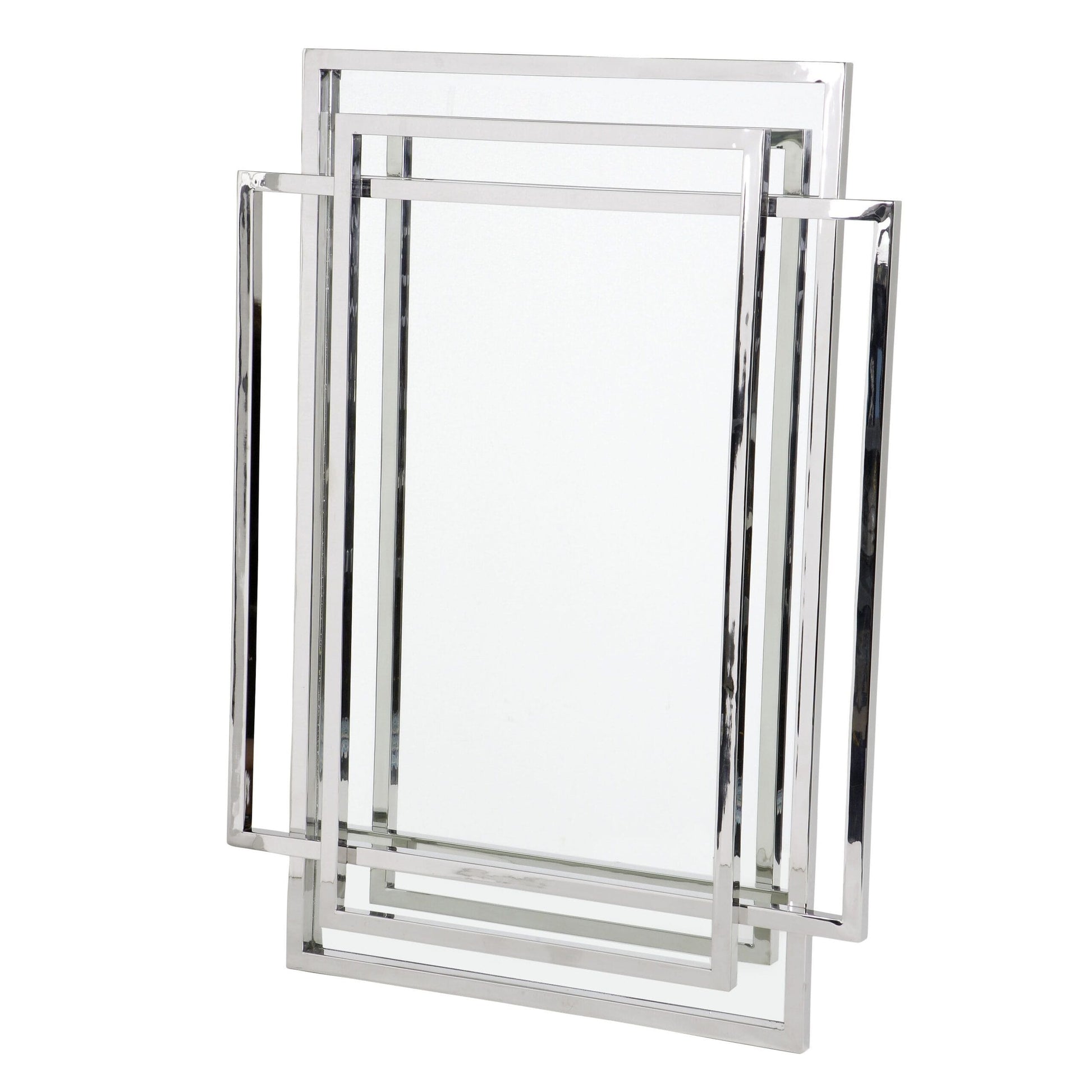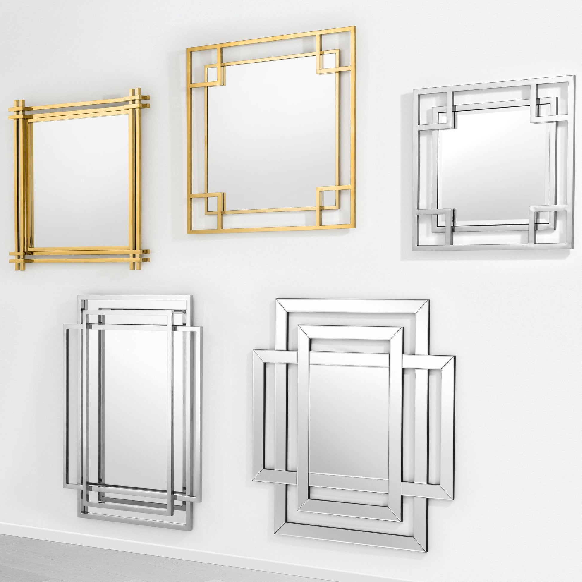En snygg och läcker väggspegel med spännande design där ljus kan släppas in och reflekterar sig i inte bara i spegelglaset utan även i ramen som är tillverkad av polerat rostfritt stål.