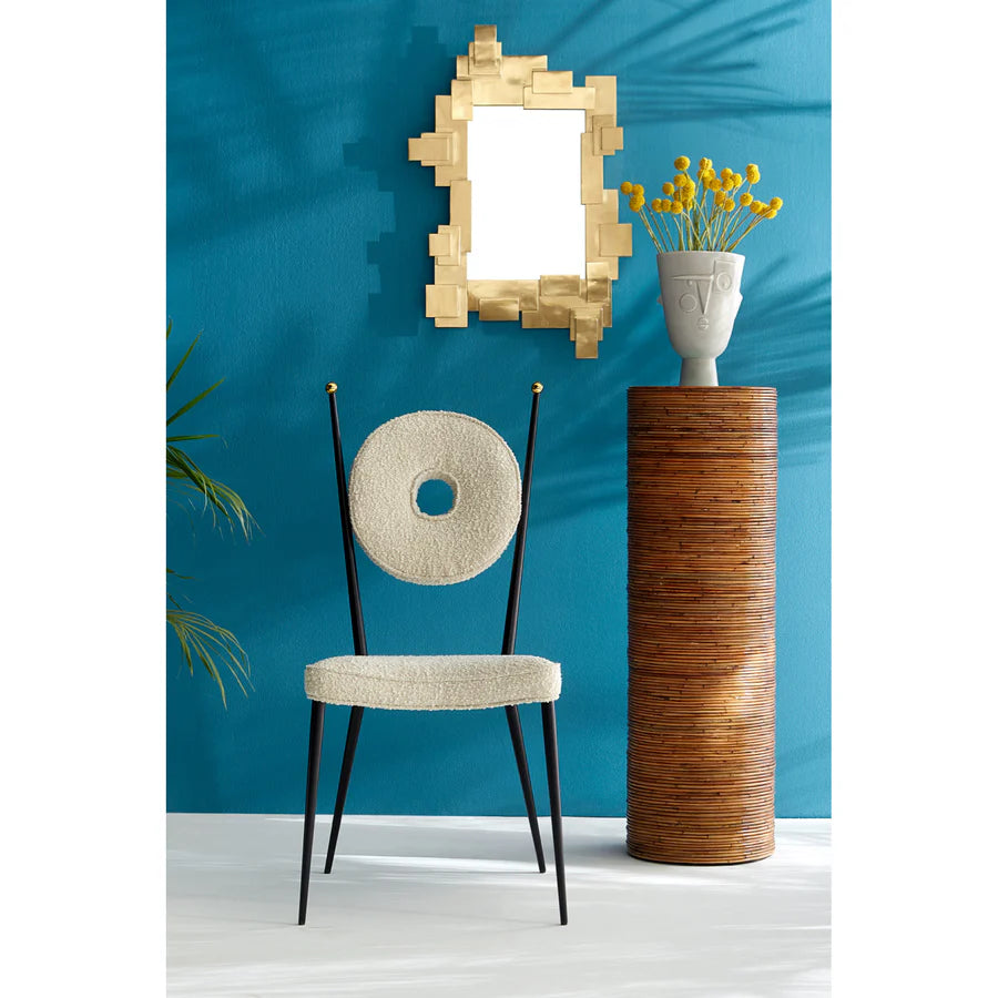 Inspirerad av ett korthus är Jonatan Adlers Väggspegel Puzzle Accent Mirror ett konstnärligt mästerverk tillverkat av skivor i massiv mässing, lager på lager i en dynamisk komposition. Denna spegel är inte bara funktionell utan också en uttrycksfull design som ger en arkitektonisk känsla till ditt hem.