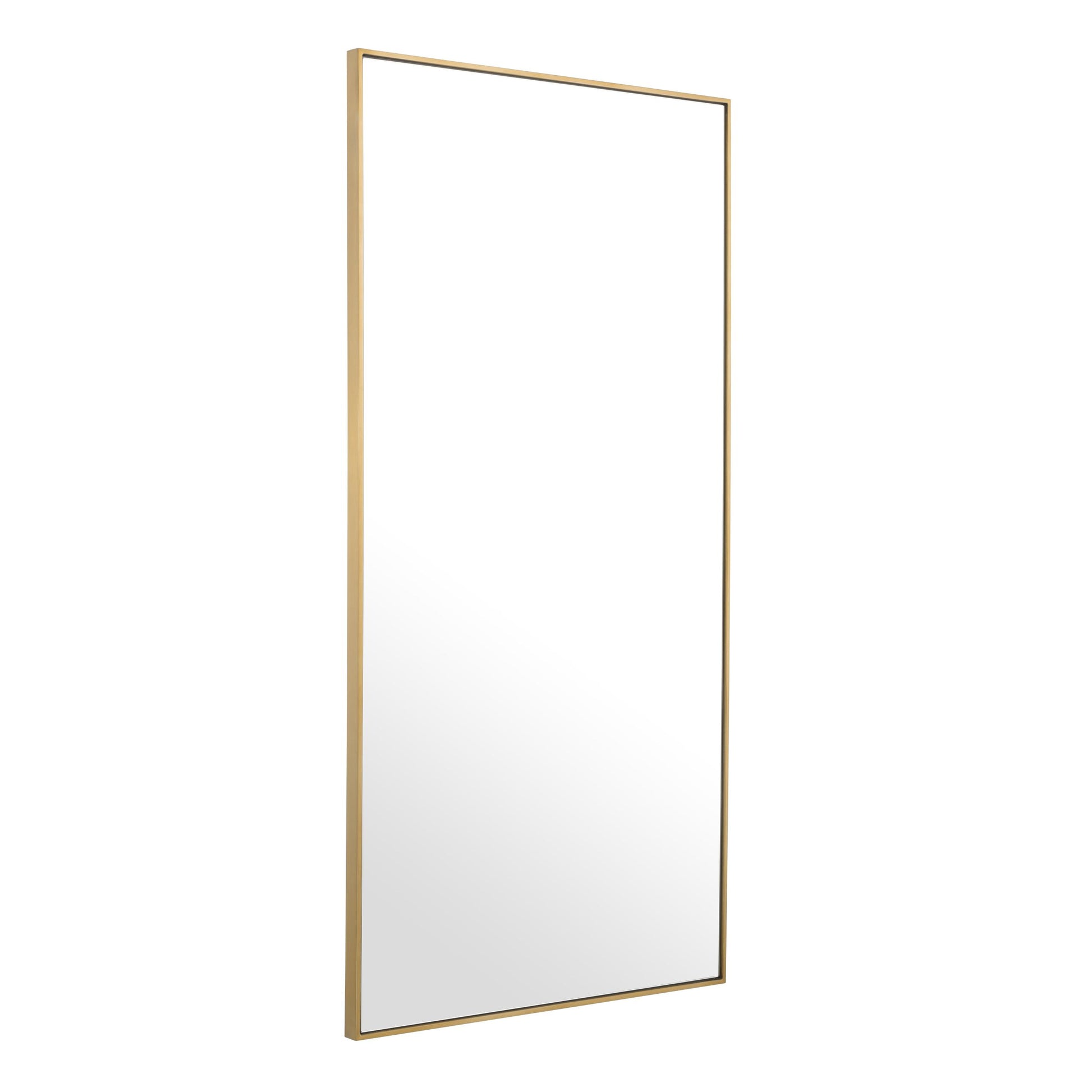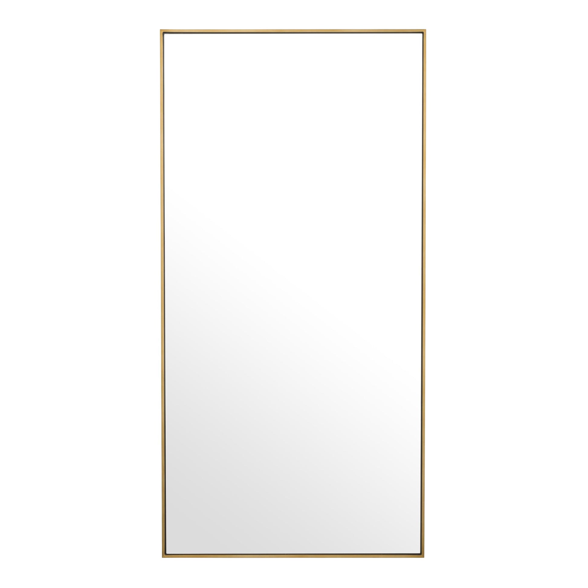 En stor och elegant spegel med borstad mässingsfinish. Läcker men ändå återhållsam på samma gång och ger med sin stora yta en härlig känsla av rymd.
