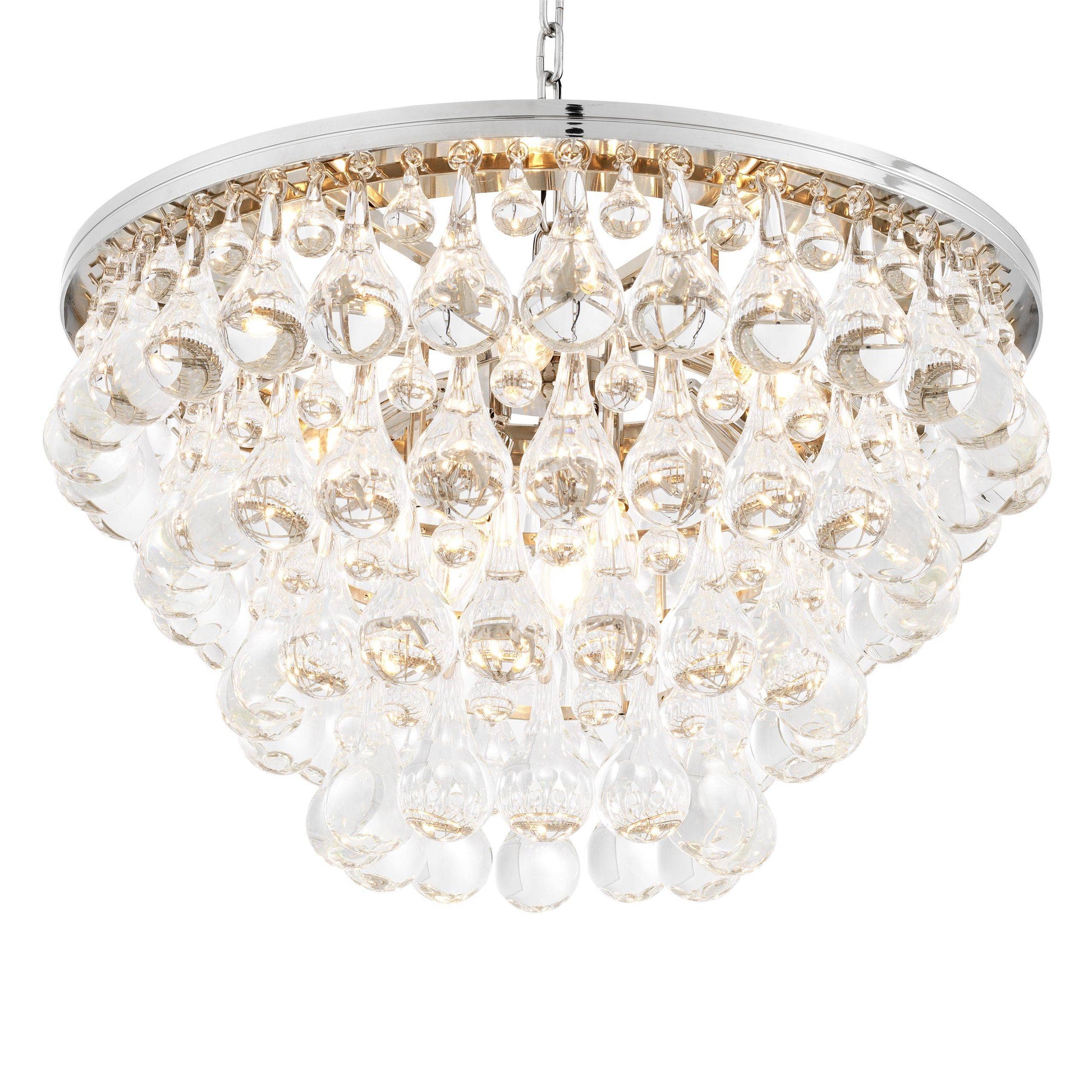 En otroligt läcker och exklusiv takkrona med mängder av droppar i handblåst glas som speglar omgivningen på ett otroligt vackert sätt. Denna lyxiga belysning med tidlös design står sig i tiden och blir snabbt en favorit i hemmet.
