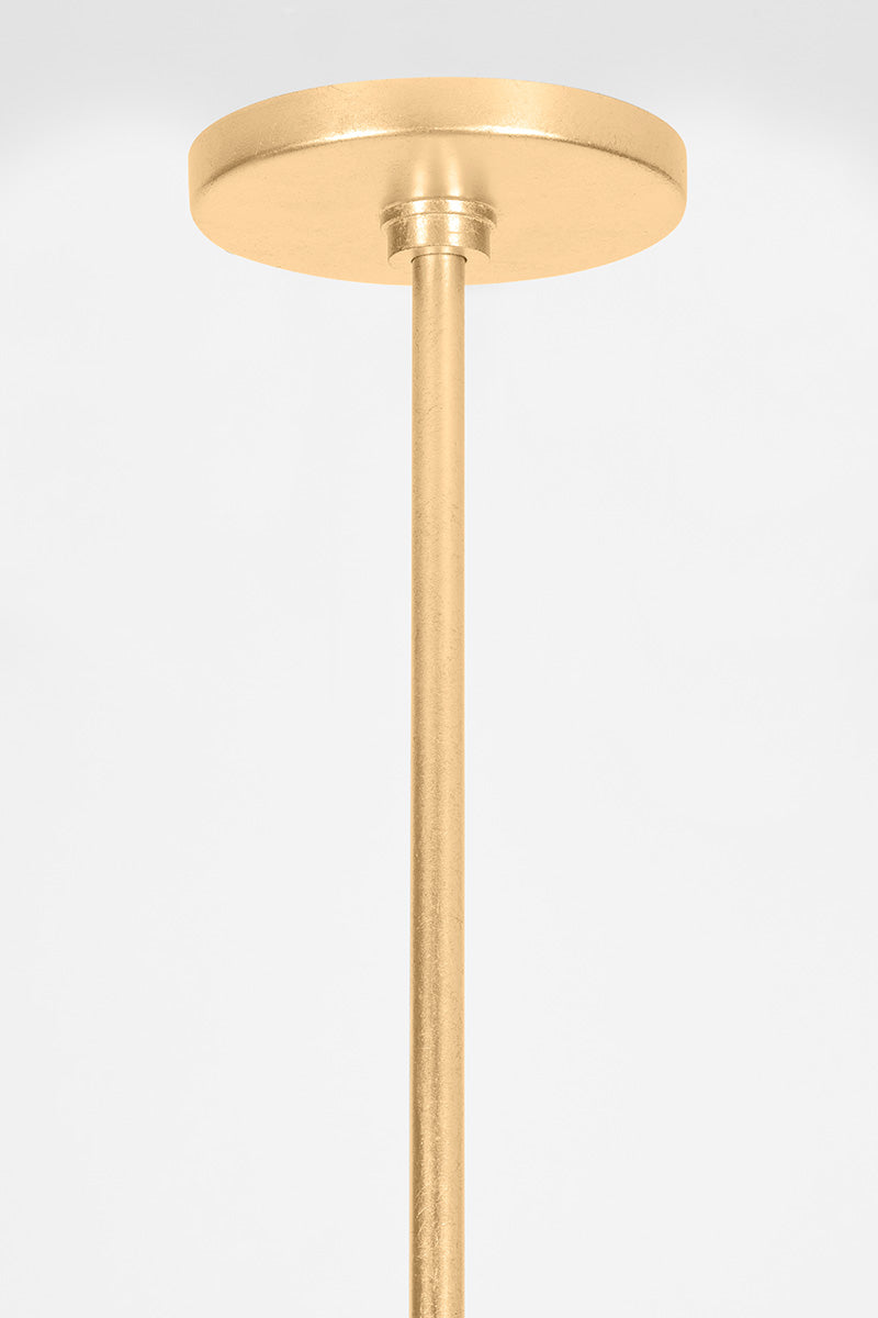 Brookhaven från Hudson Valley Lighting Group är en elegant pendel där överlappande blad i Vintage Gold Leaf bildar en sofistikerad, blominspirerad skärm. Ljuset från det blanka opalglaset reflekteras mot de gyllene bladen och sprider en varm, mjuk glöd i rummet. Denna stilfulla taklampa kombinerar organisk form med en exklusiv finish och finns i två storlekar för att passa olika interiörer.