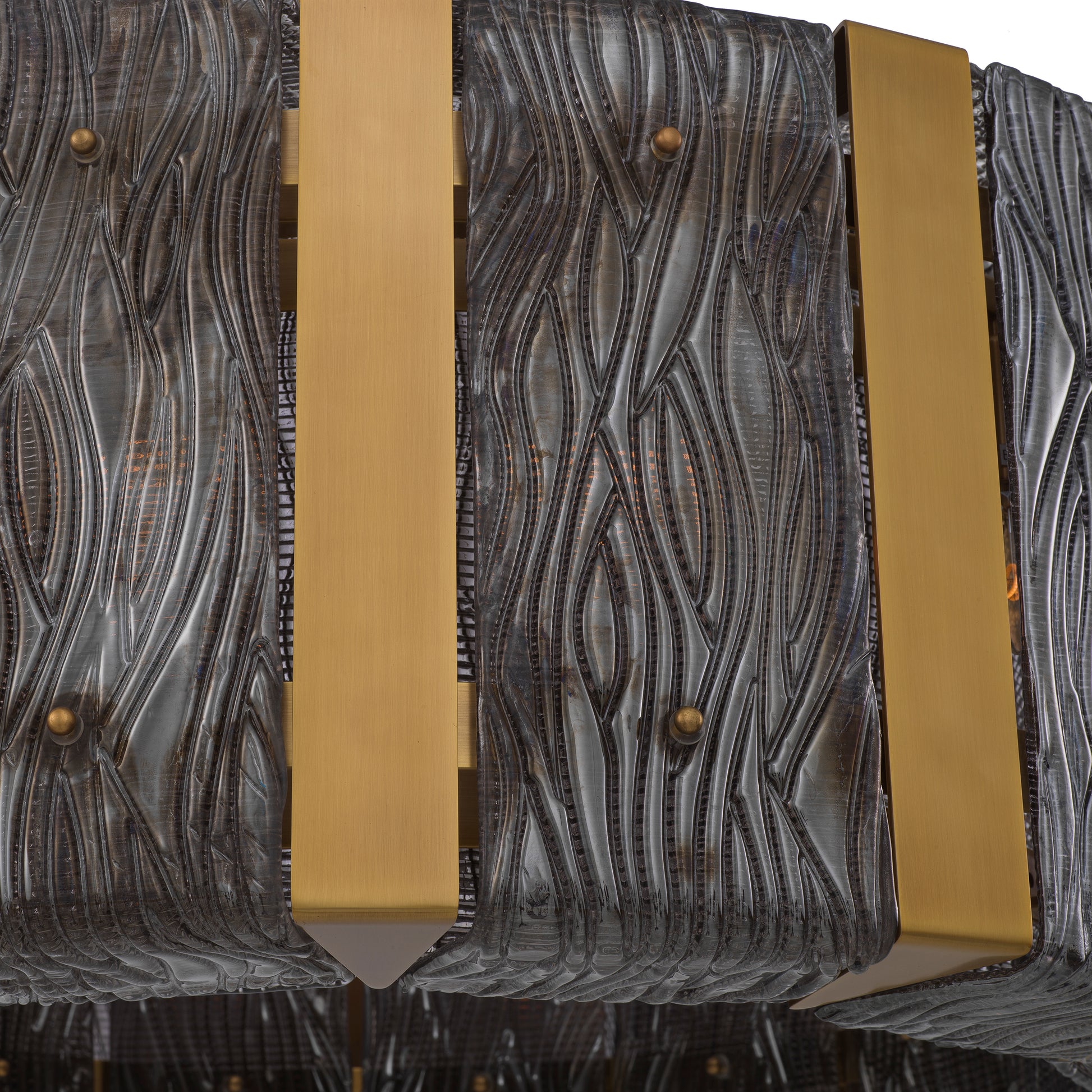 Taklampa Elysian från Eichholtz presenterar en elegant kombination av antik mässingsfinish och rökfärgade glaspaneler med intrikata mönster som skapar ett fängslande samspel mellan ljus och skugga. Denna sofistikerade armatur förenar varma metalltoner med rikt texturerat glas och sprider en stämningsfull belysning som kompletterar exklusiva interiörer med förfinad elegans.