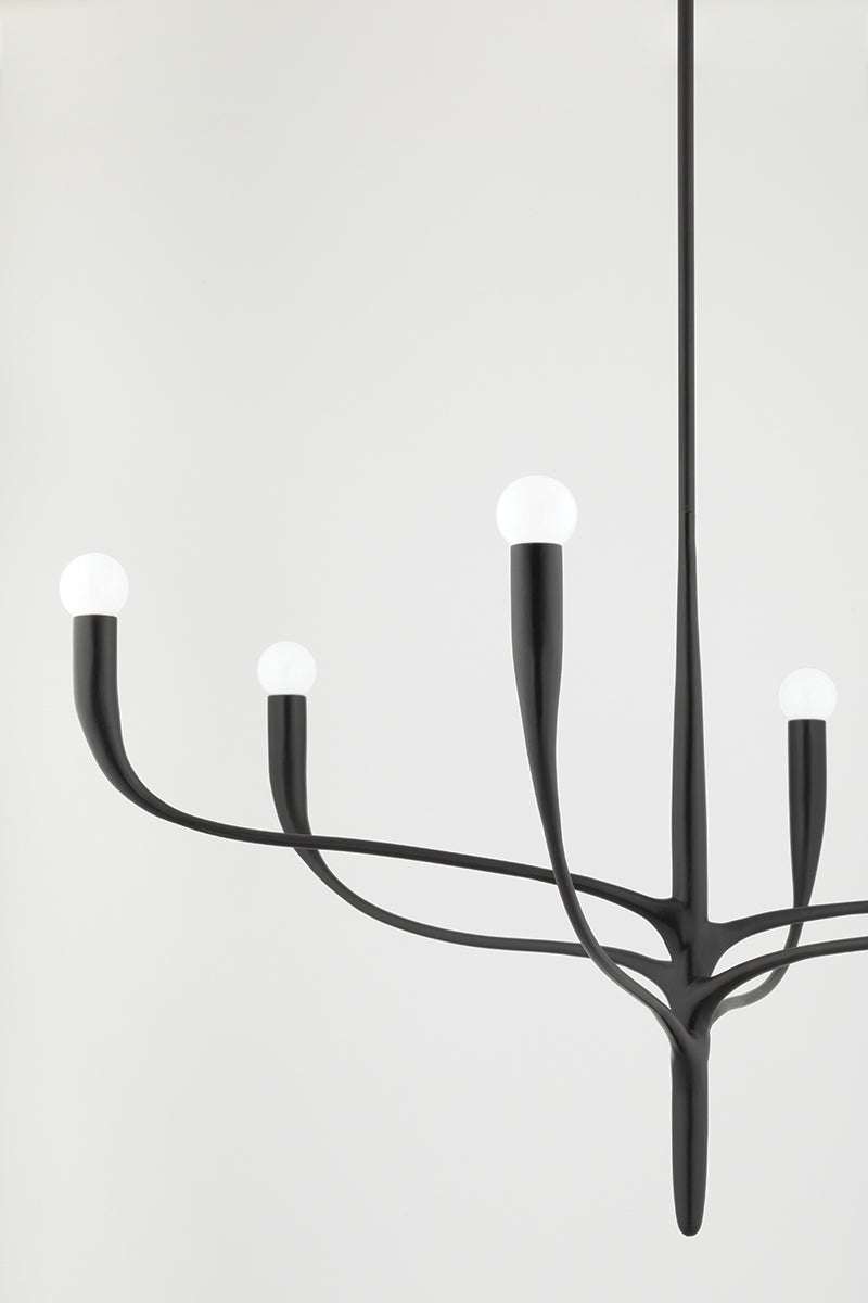Takkronan Labra i färgen Aged Iron från Hudson Valley Lighting Group är en elegant och konstnärlig ljuskälla inspirerad av undervattensväxter. Dess långa, smäckra armar sträcker sig ut och bär upp små globformade glasskärmar som påminner om ljusprydda ornament. Den mjukt avsmalnande änden på varje arm ger designen en subtil, skulptural känsla, medan den mörka Aged Iron-finishen förstärker den sofistikerade och tidlösa estetiken. Labra är en perfekt takkrona för att skapa en elegant och unik belysningslösning i allt från vardagsrum och matsalar till entréer.