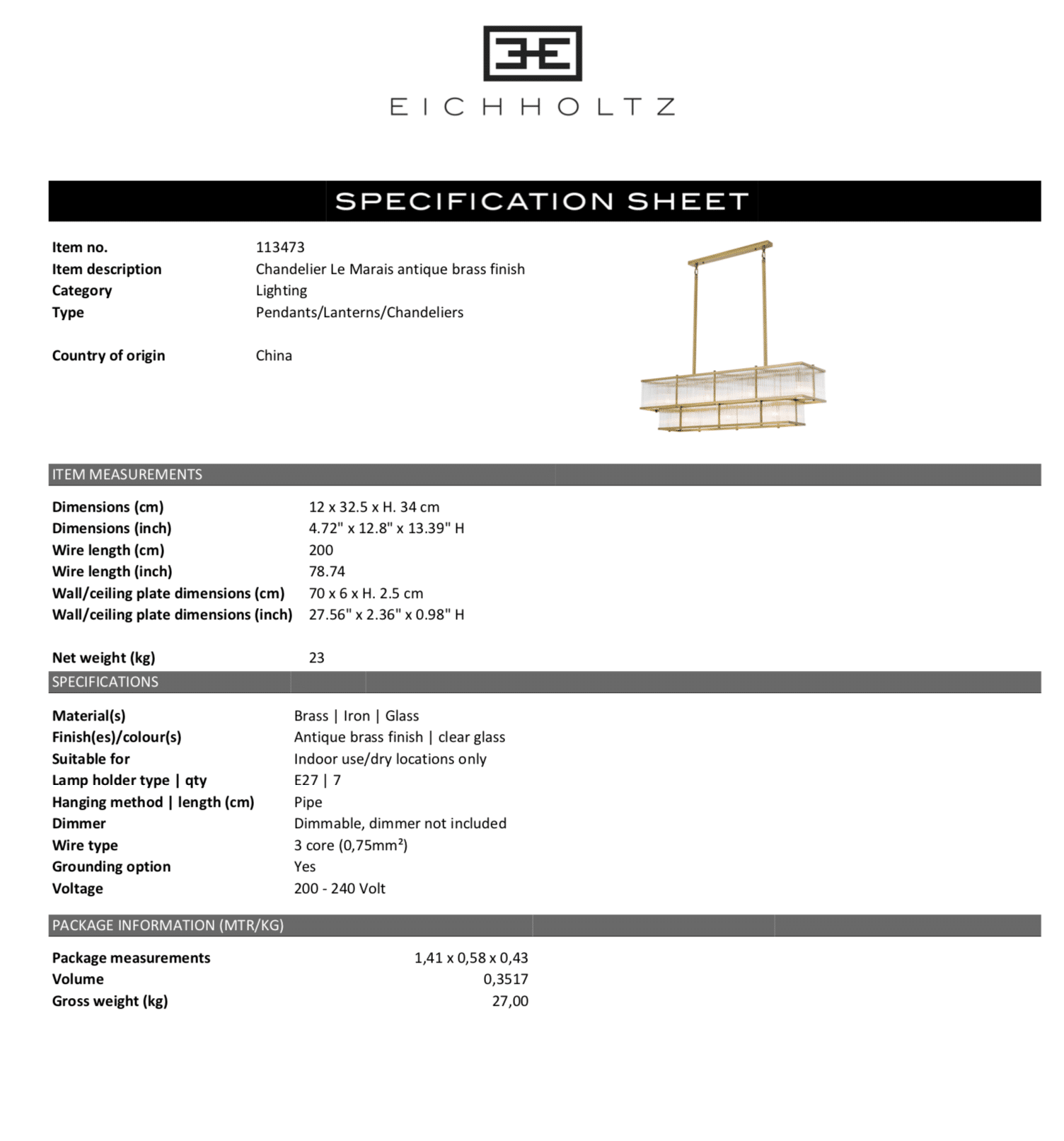 Chandelier Le Marais från Eichholtz.
