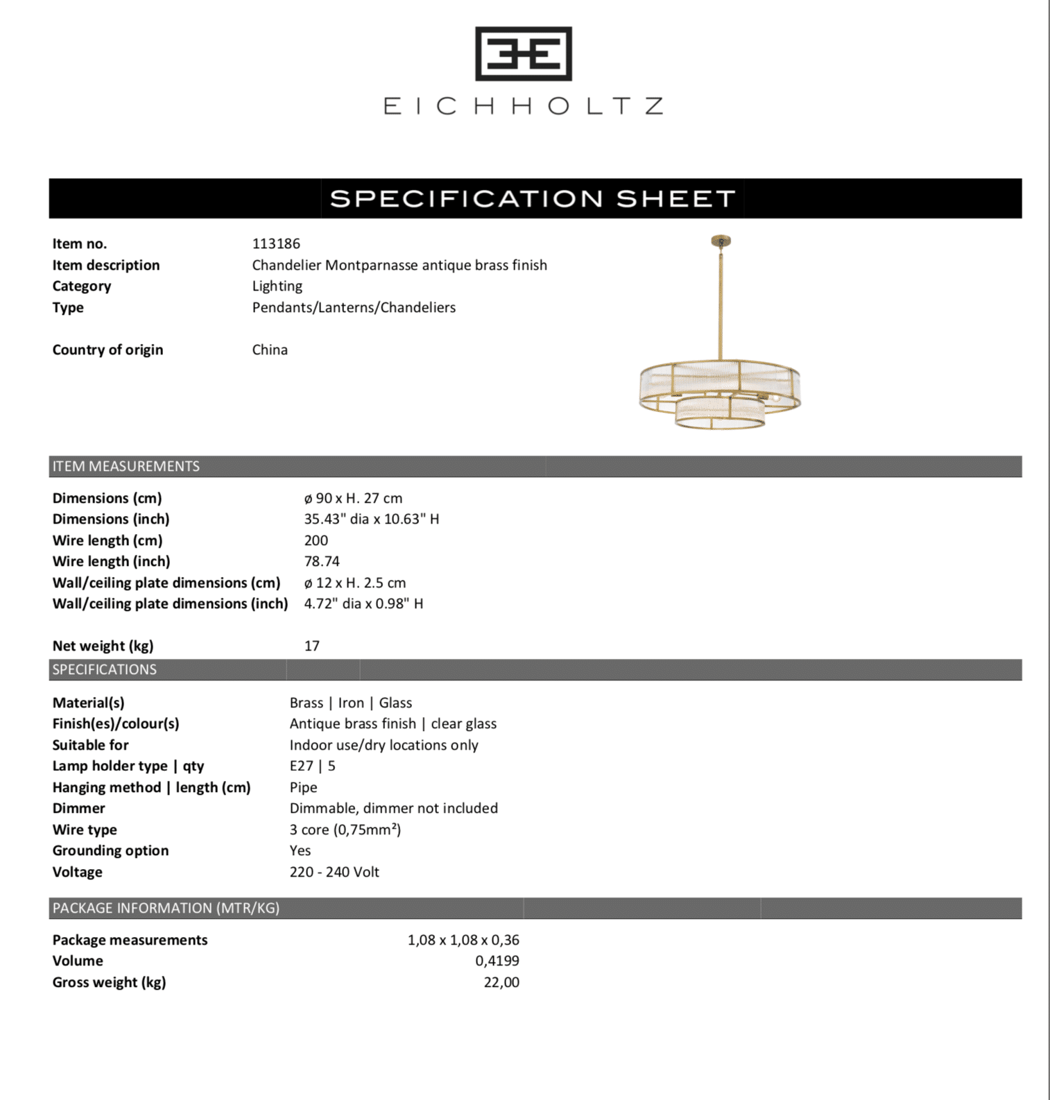 90cm diameter och höjd 27cm, och sedan bygger man på och/eller kombinerar med rör enligt nedan till önskad längd från taket.