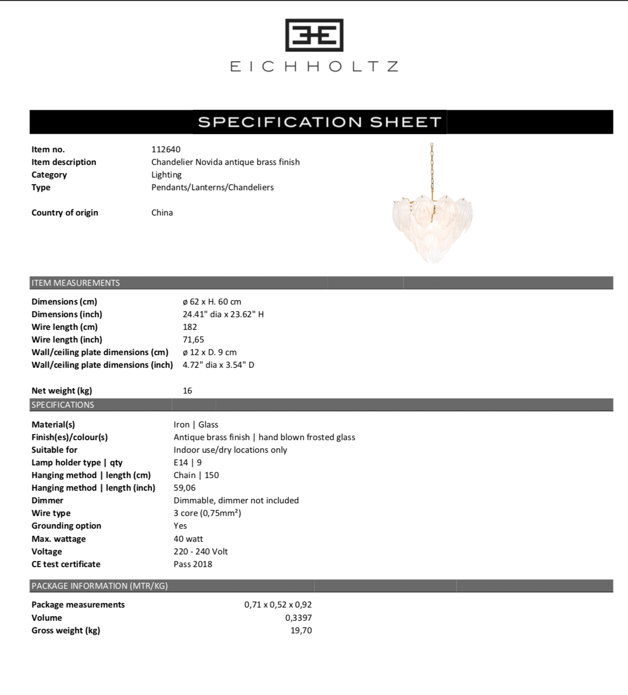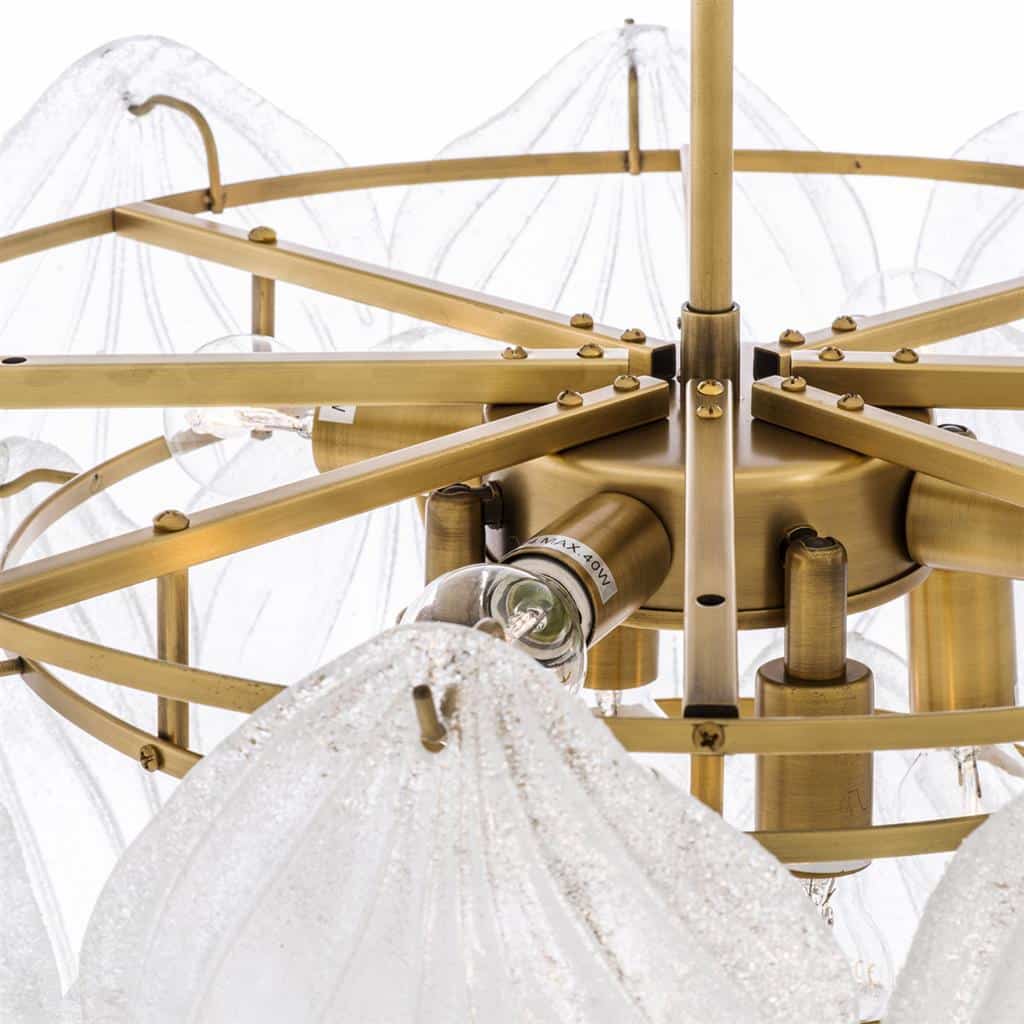 Chandelier Novida från Eichholtz. Läcker och snygg taklampa med handblåst frostat glas.