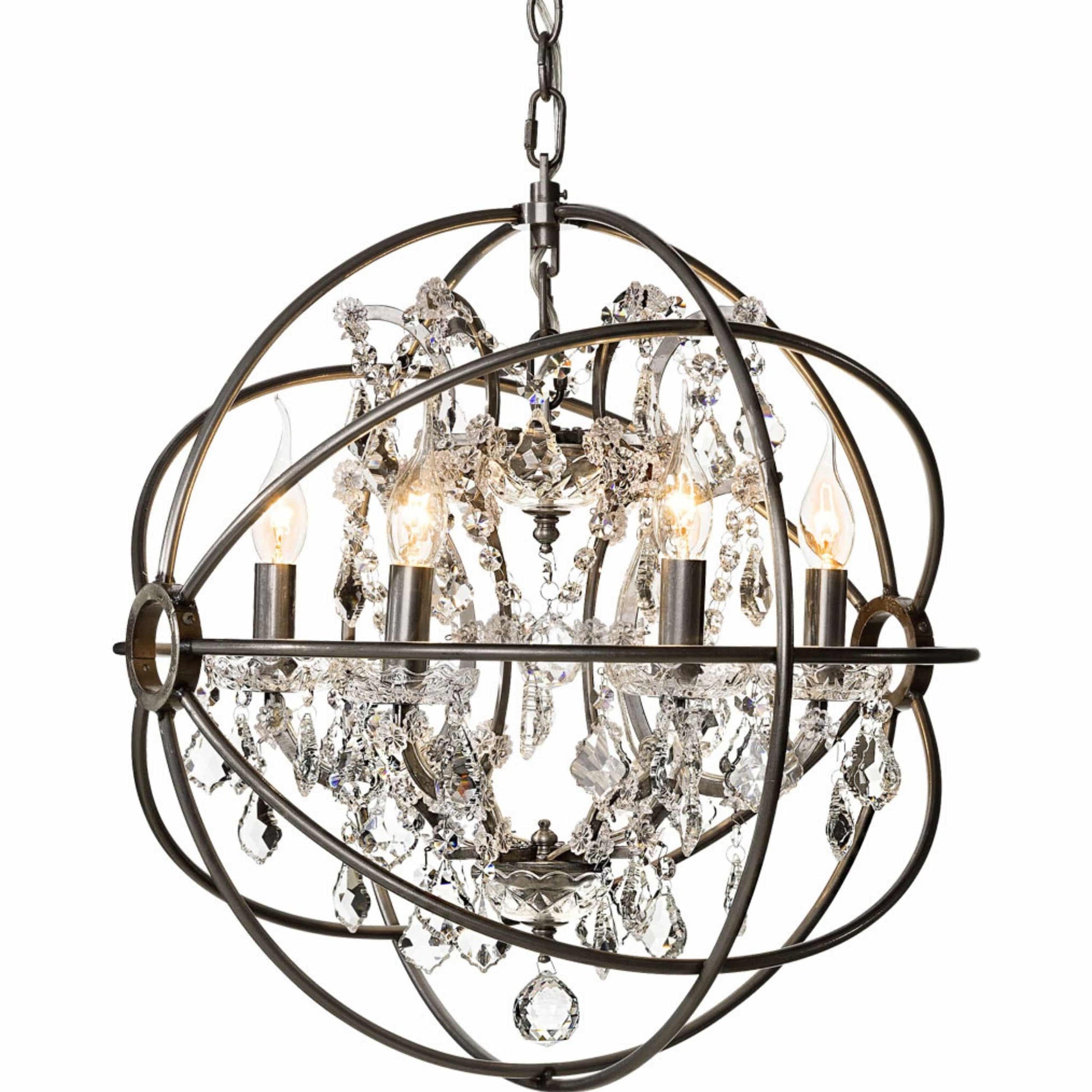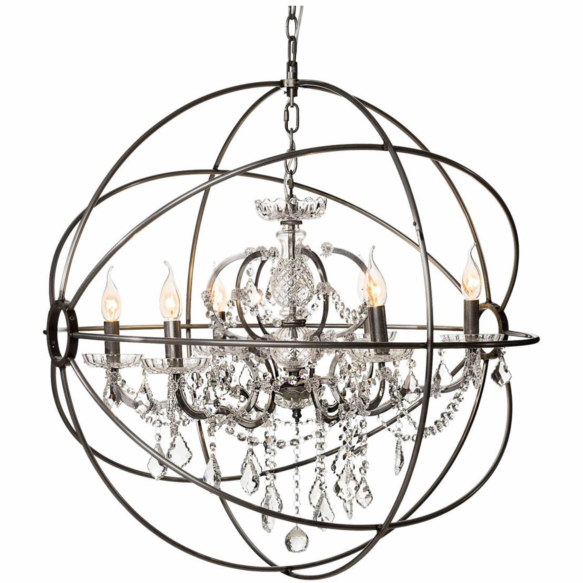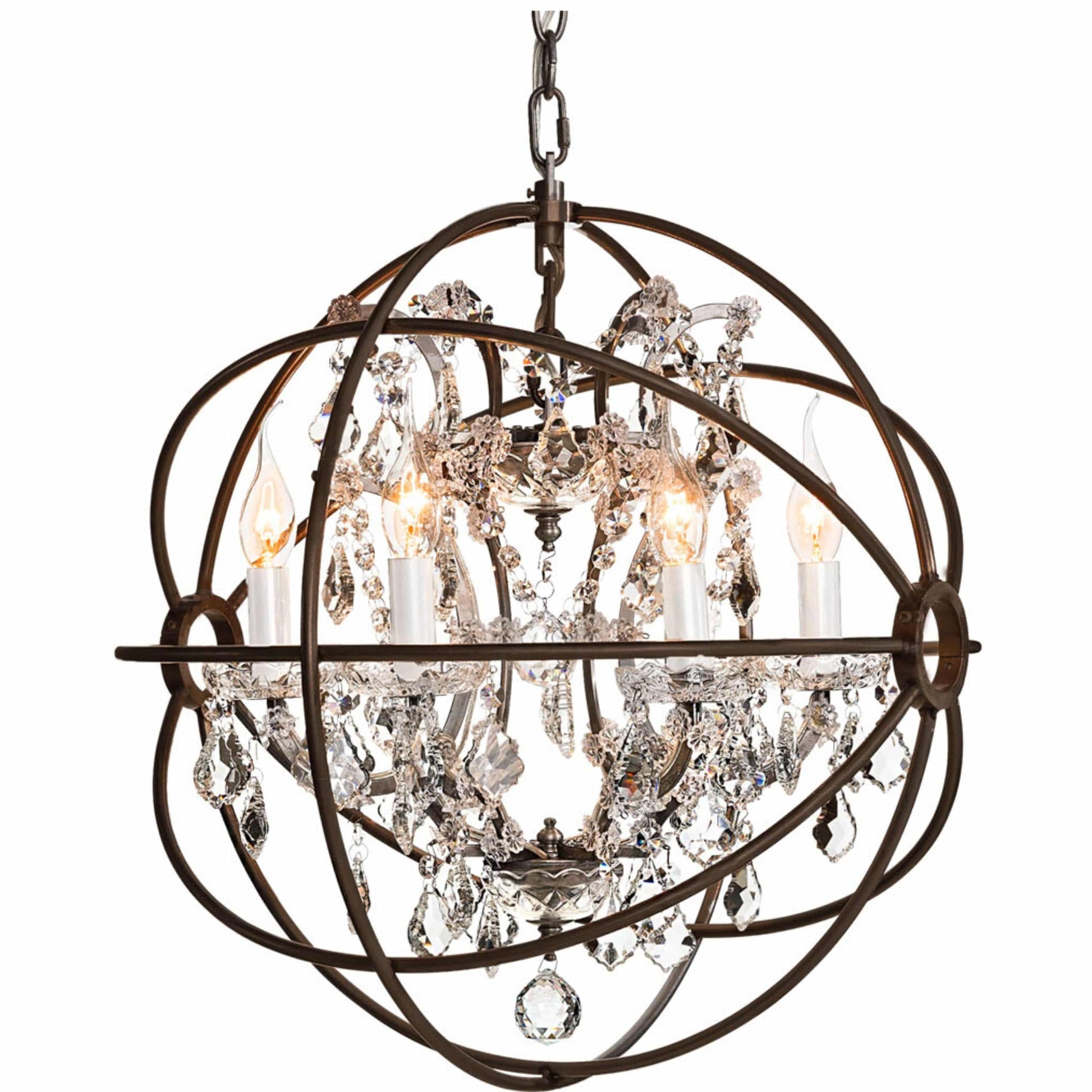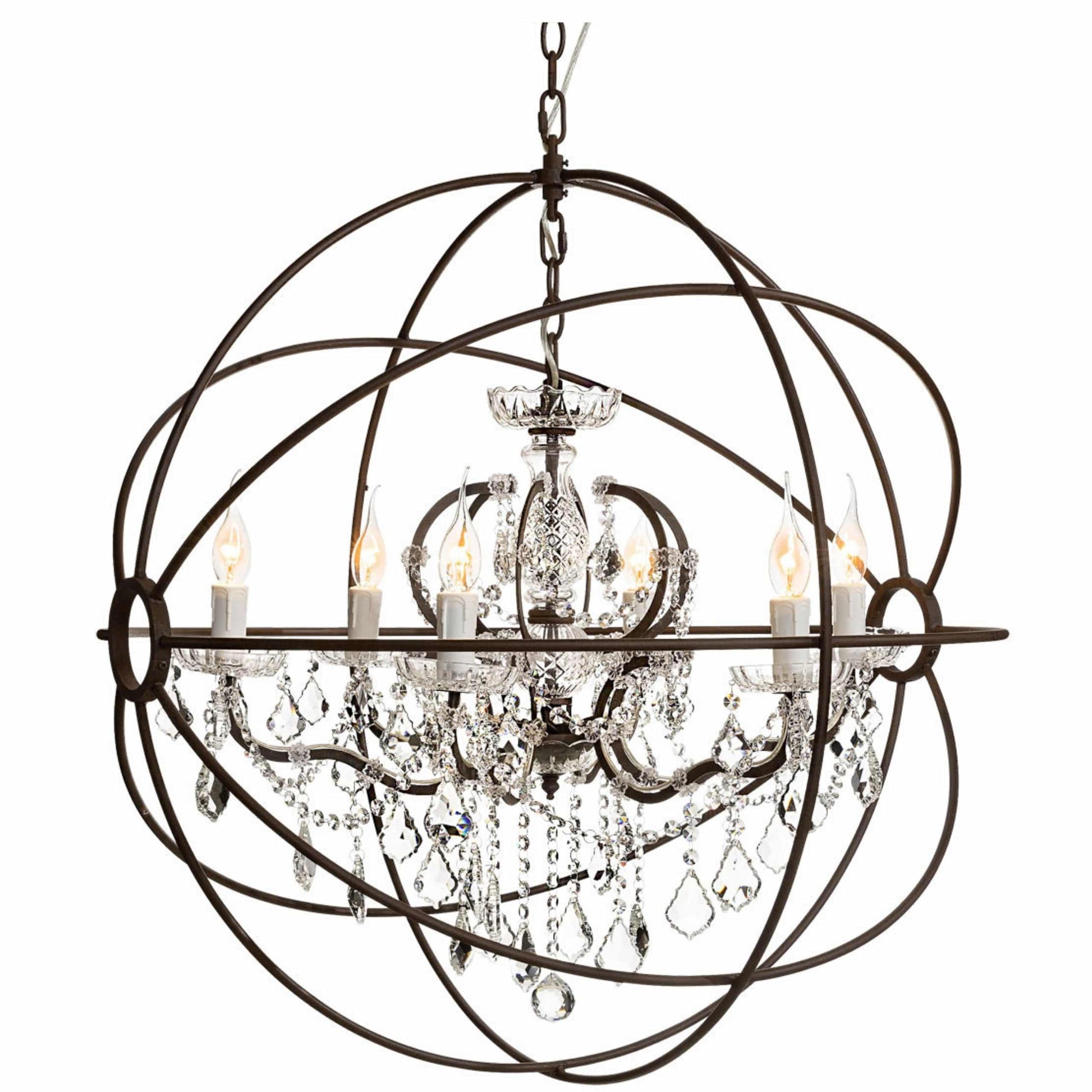 En häftig takkrona där man blandar det exklusiva och eleganta från en kristallampa med det moderna, industriella och utmanande i metall och rostig finish. En lampa som snabbt drar åt sig ögonen och förgyller inredningen.