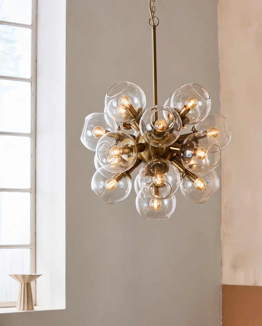 Förvandla ditt hem med Atomic-taklampan från Nordal – en pärla i guld och glas som ger ditt hem en unik karaktär.