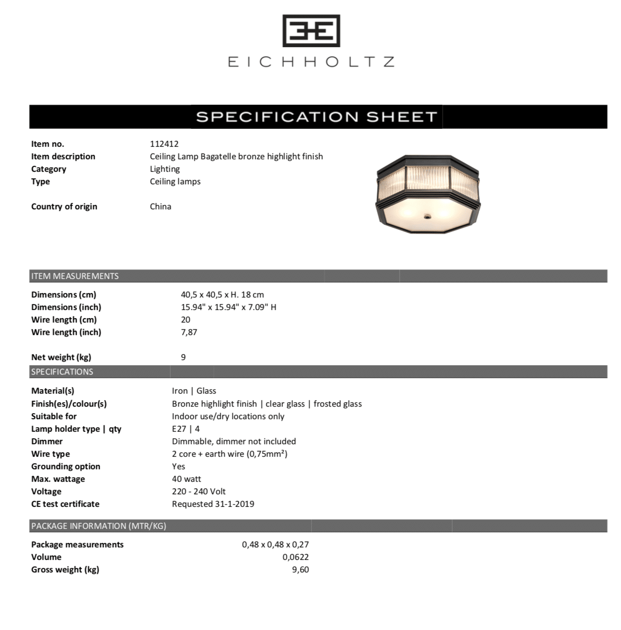 Ceiling Lamp Bagatelle från Eichholtz. Stilren och mycket exklusiv taklampa med klarglas och frostat glas.