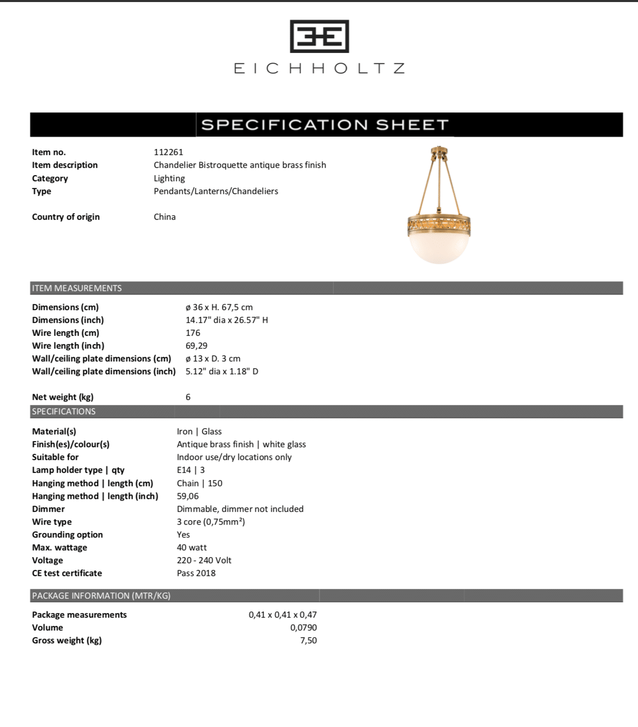 Chandelier Bistroquette från Eichholtz. Elegant och stilig taklampa med vitfärgat glas.