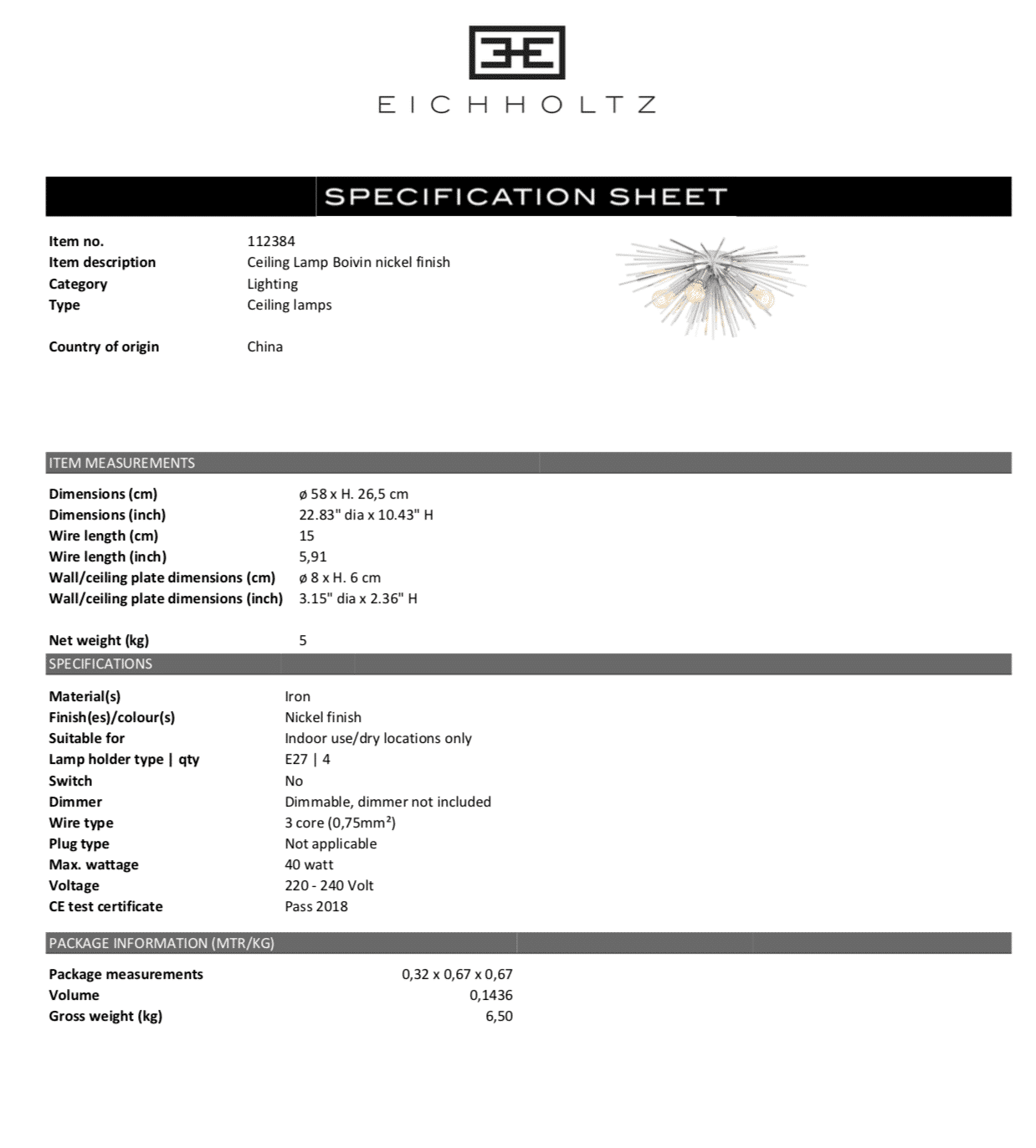Lamptyp: 4 st E27 (Lampor ingår ej), max 40W. Beställningsvara.