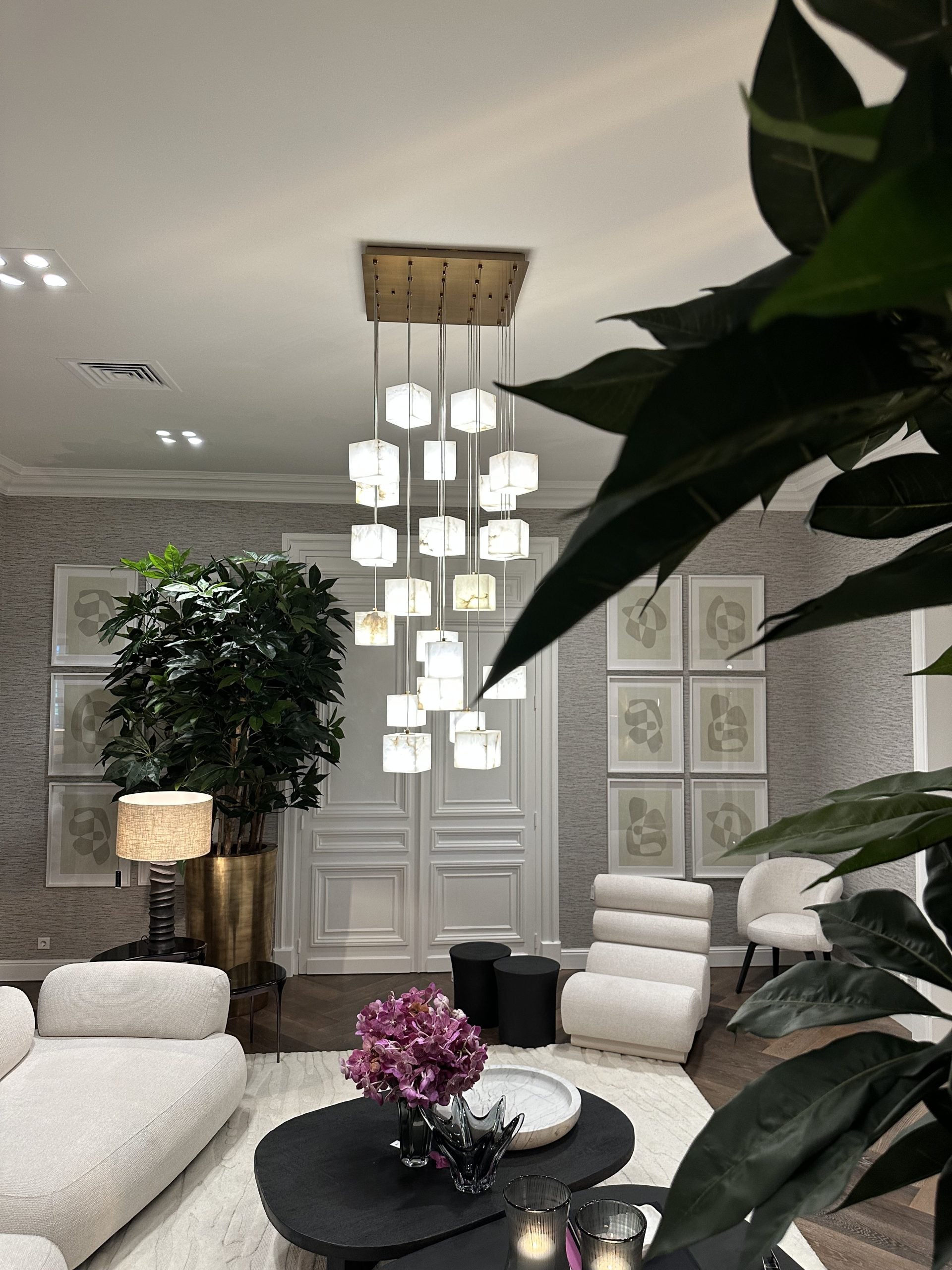 Taklampa Duboce är ett fängslande mästerverk som visar upp skönheten i flexibilitet och konstnärskap. I en antik mässingfinish har denna takkrona block i stenen alabaster som kan arrangeras i olika fängslande konfigurationer genom att justera trådlängderna individuellt, vilket låter dig skapa en verkligt unik och personlig design. Taklampa Duboce är den perfekta mittpunkten för ditt hem och speglar din kreativitet i friheten att anpassa designen.
