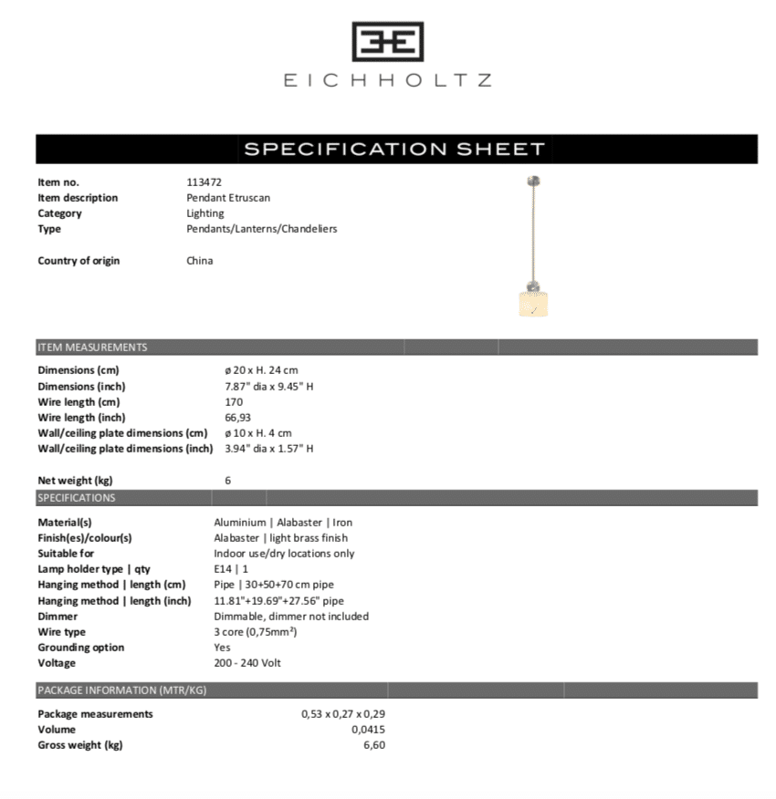 Pendant Etruscan från Eichholtz.