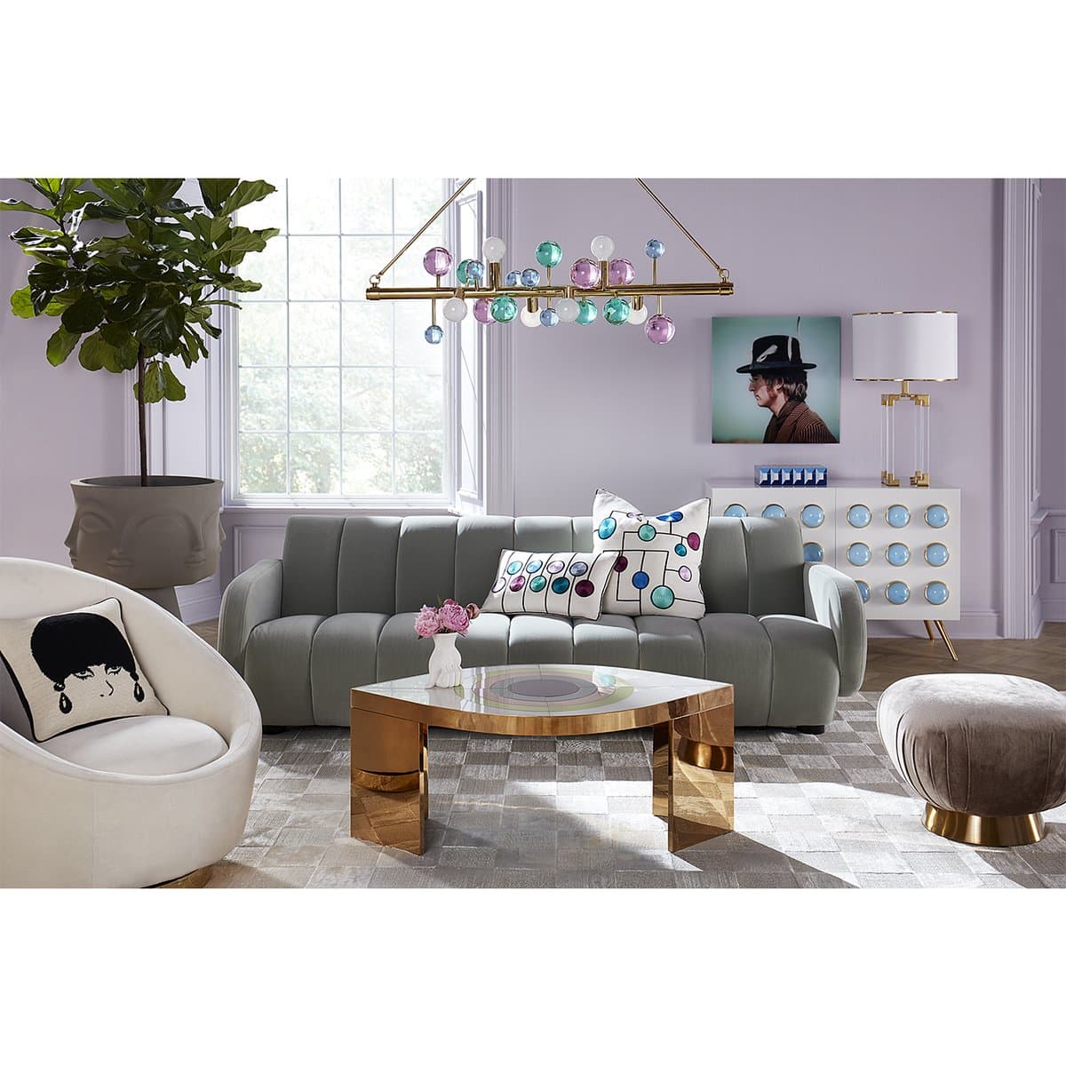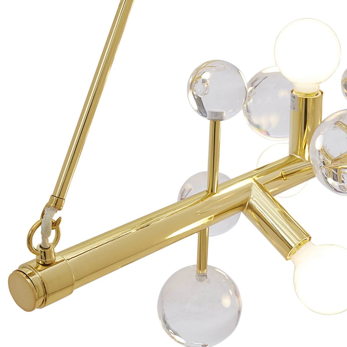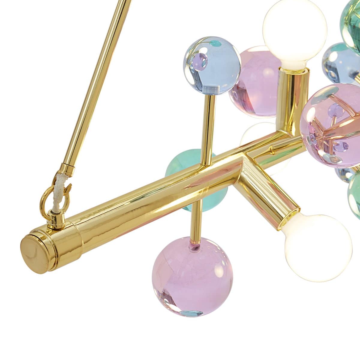 A dazzling line of light suspended from two brass rods, our Globo Six-Light Linear Chandelier features a polished brass bar dotted with jewel-toned acrylic spheres and globe bulbs. Jewelry to swag above your dining table, it’s a little industrial, a little fancy, and a lot glamorous.