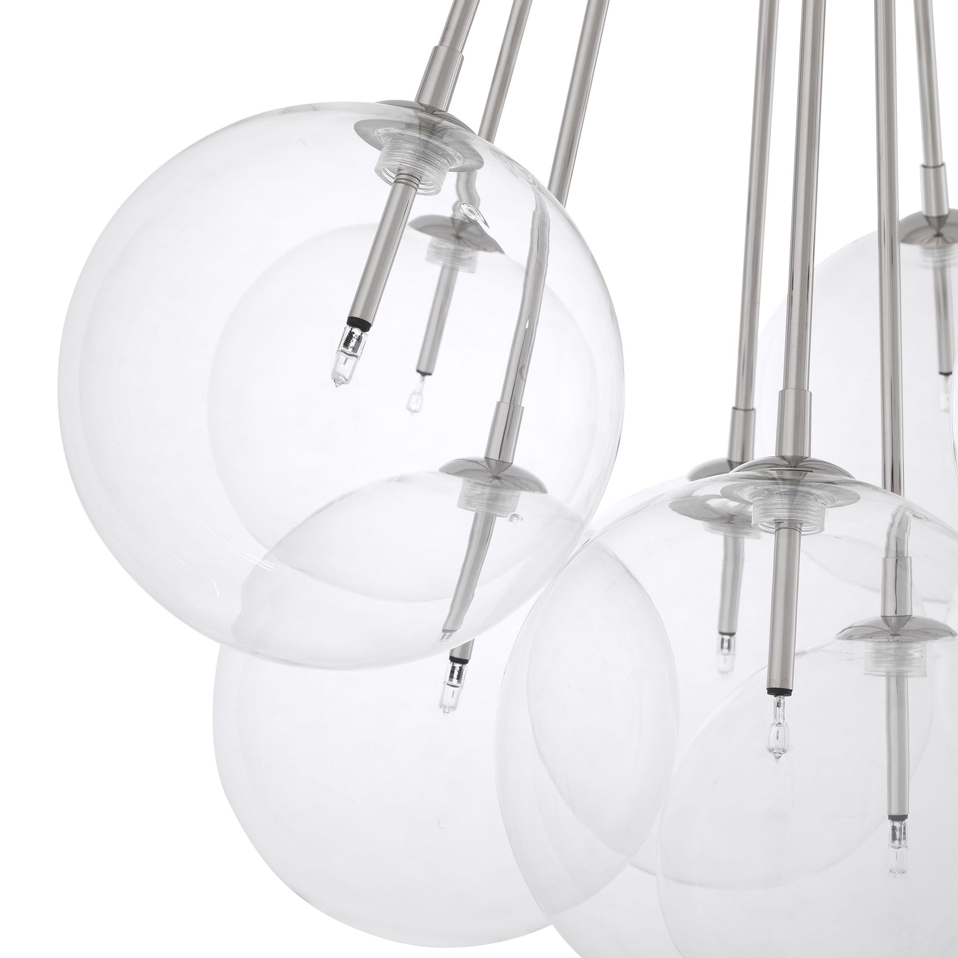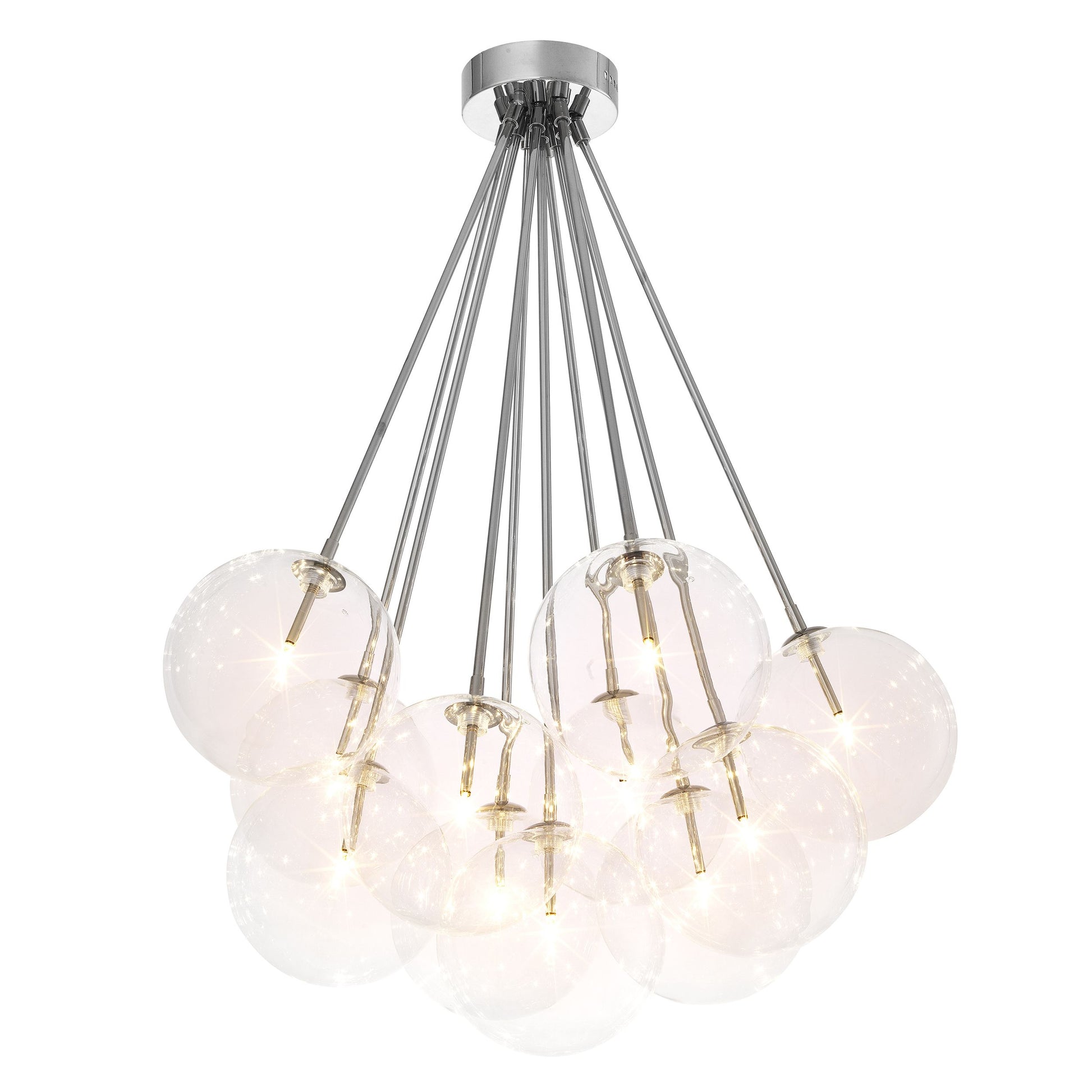 En mycket exklusiv och lyxig taklampa med underbar design och kvalitet. 11st läckra glober i klart glas i olika höjd tillsammans med en läcker finish gör denna lampa inte bara till en belysning, utan till ett eget lite konstverk med retrodesign i modern tappning.