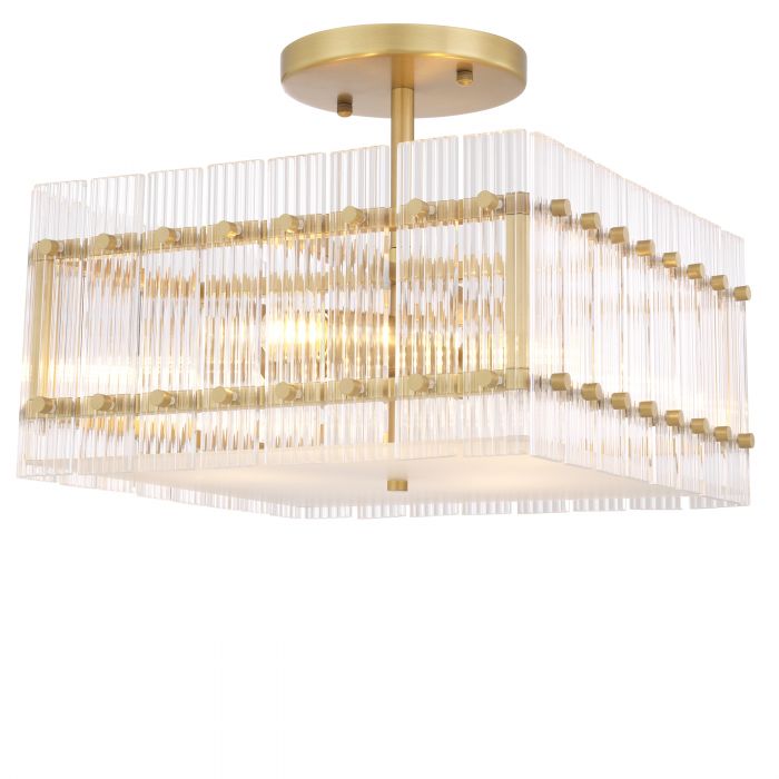 För dig som söker en glamorös och modern estetik, är taklampa Ruby rätt val för dig, En modern variation till klassisk stil, bjuder denna kvadratiska taklampa med vintage mässingsfinish och plattor av räfflat klart glas in till stämningsfull belysning.