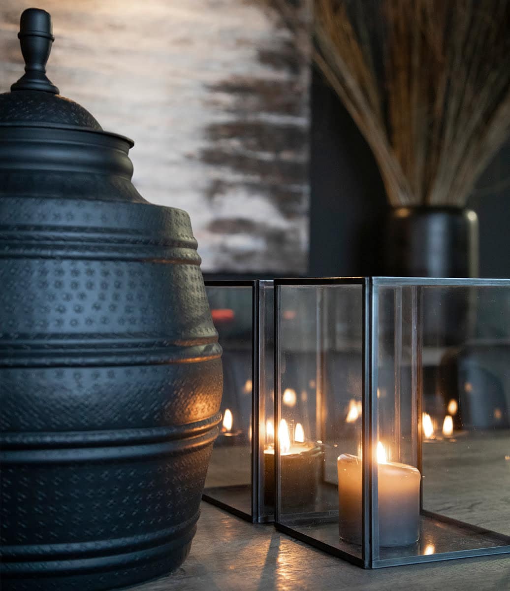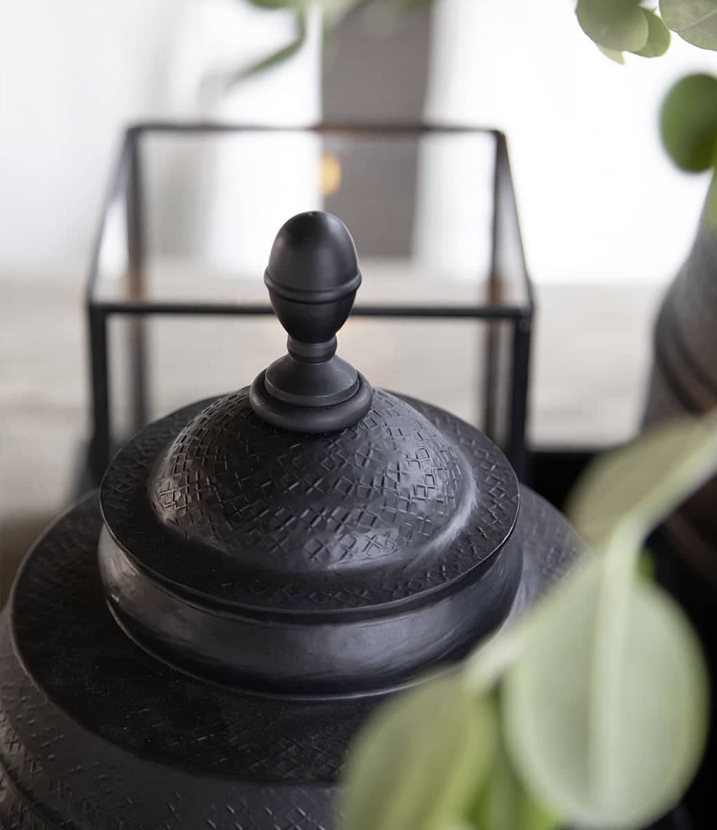Urna Prato är en mycket läcker dekoration i aluminium som lackats i mattsvart. En härlig inredningsdetalj på sidobordet eller i klunga på soffbordet.