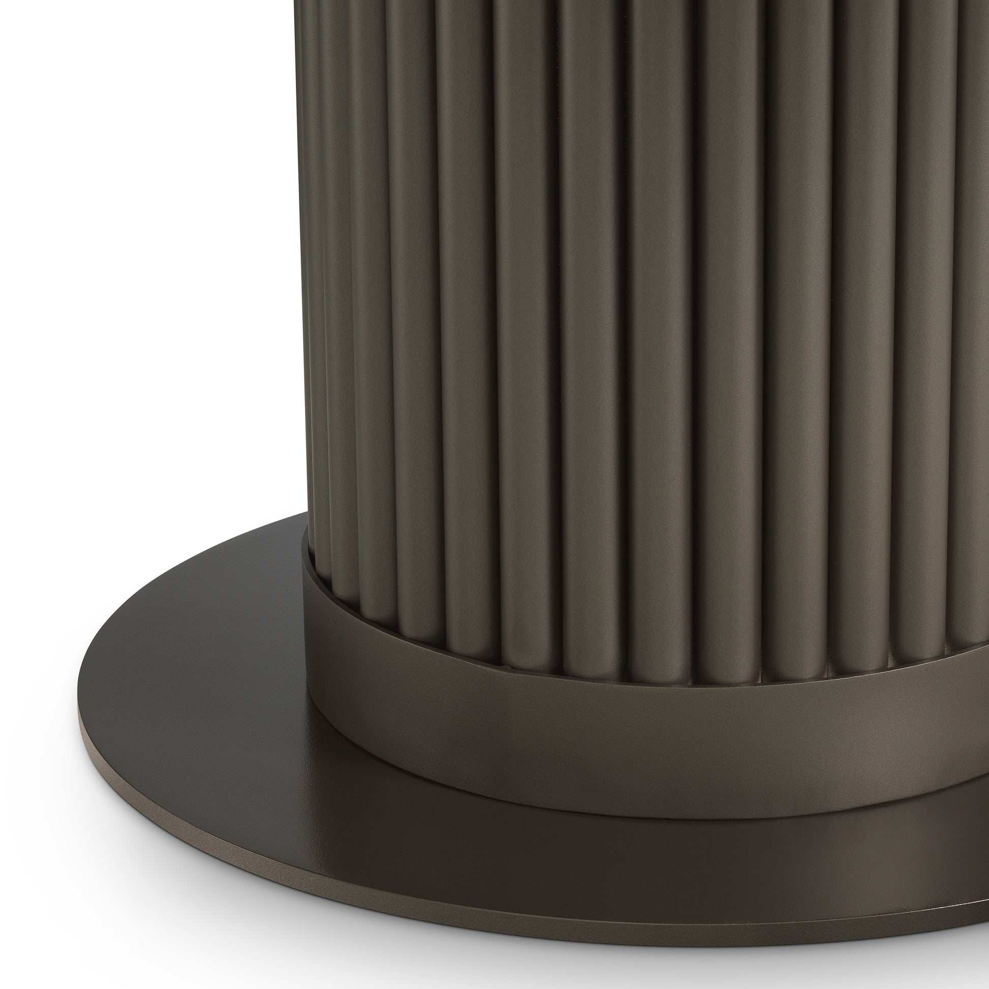 Volterra utomhusbord rund från Eichholtz har en strömlinjeformad siluett med bronsfärgad finish som kombinerar modern stil med hållbarhet. Bordsskivan i keramik förenar stenens elegans med moderna materialens praktiska egenskaper, vilket ger en slitstark och vacker yta som tål vardagens användning. Den runda formen skapar både elegans och funktionalitet och gör bordet till en sofistikerad mittpunkt som förhöjer både utomhus- och inomhusmiljöer.