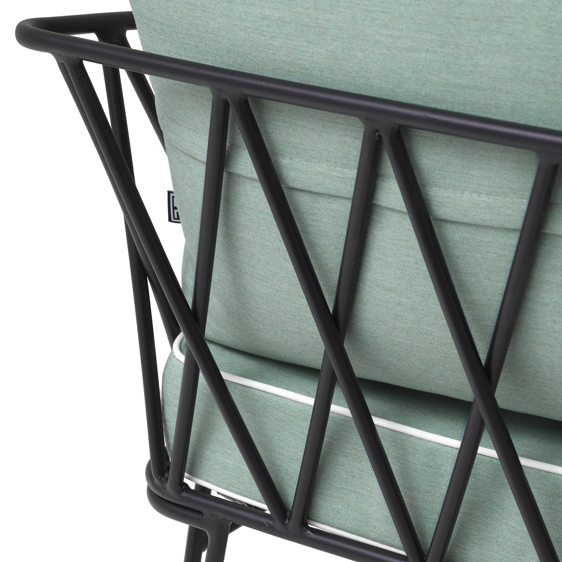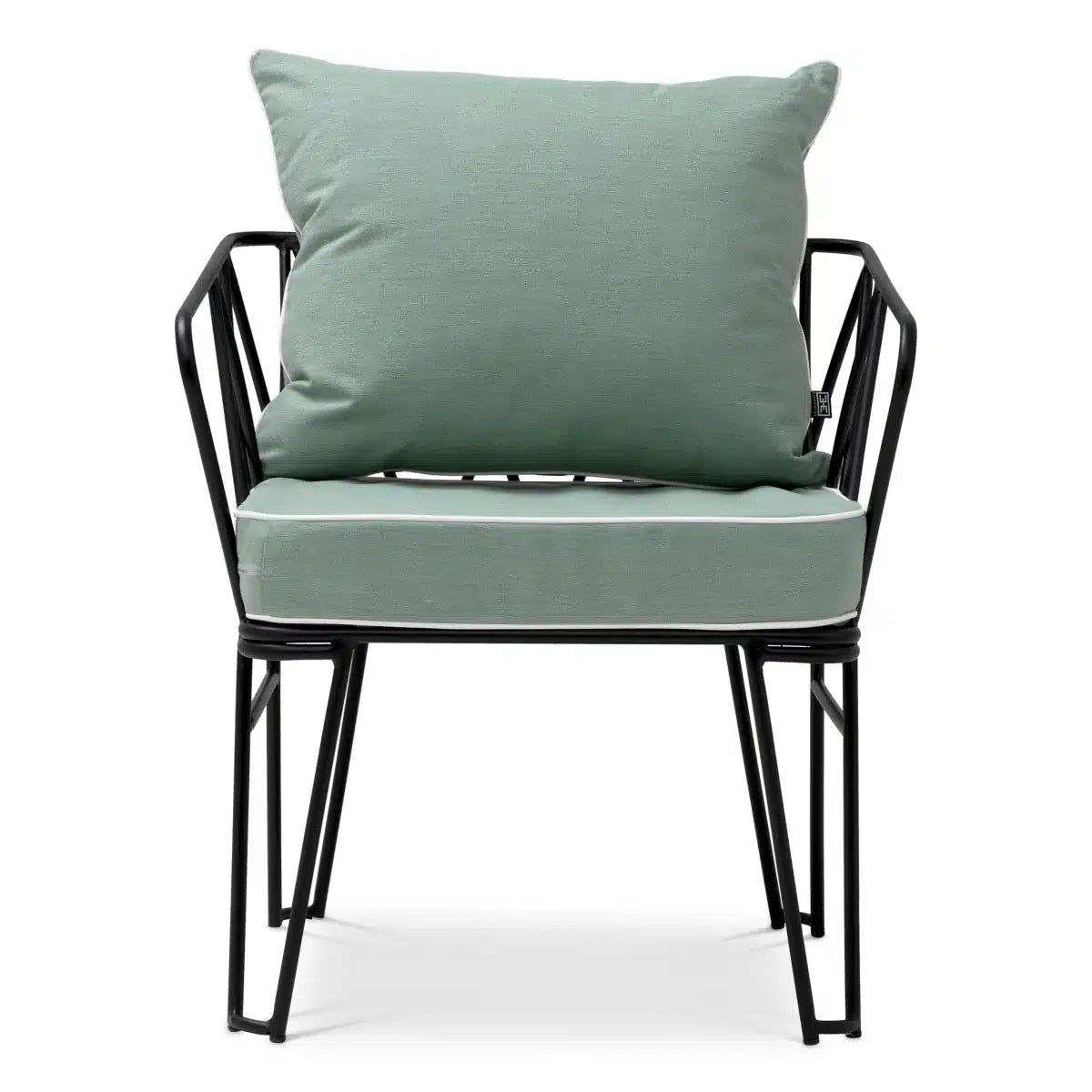 Denna markanta stol är ett statement för din utomhusmiljö. Den sofistikerade fåtöljen har tyg i blaise light blue och en matt svart ram. Med en bekvämt mjuk ryggkudde och sits, båda med kontrasterande vita passpoaler. Denna fåtölj är noggrant utformad för att vara ett både snyggt och praktiskt tillskott i uterum, veranda, uteplats, balkong eller trädgård.
