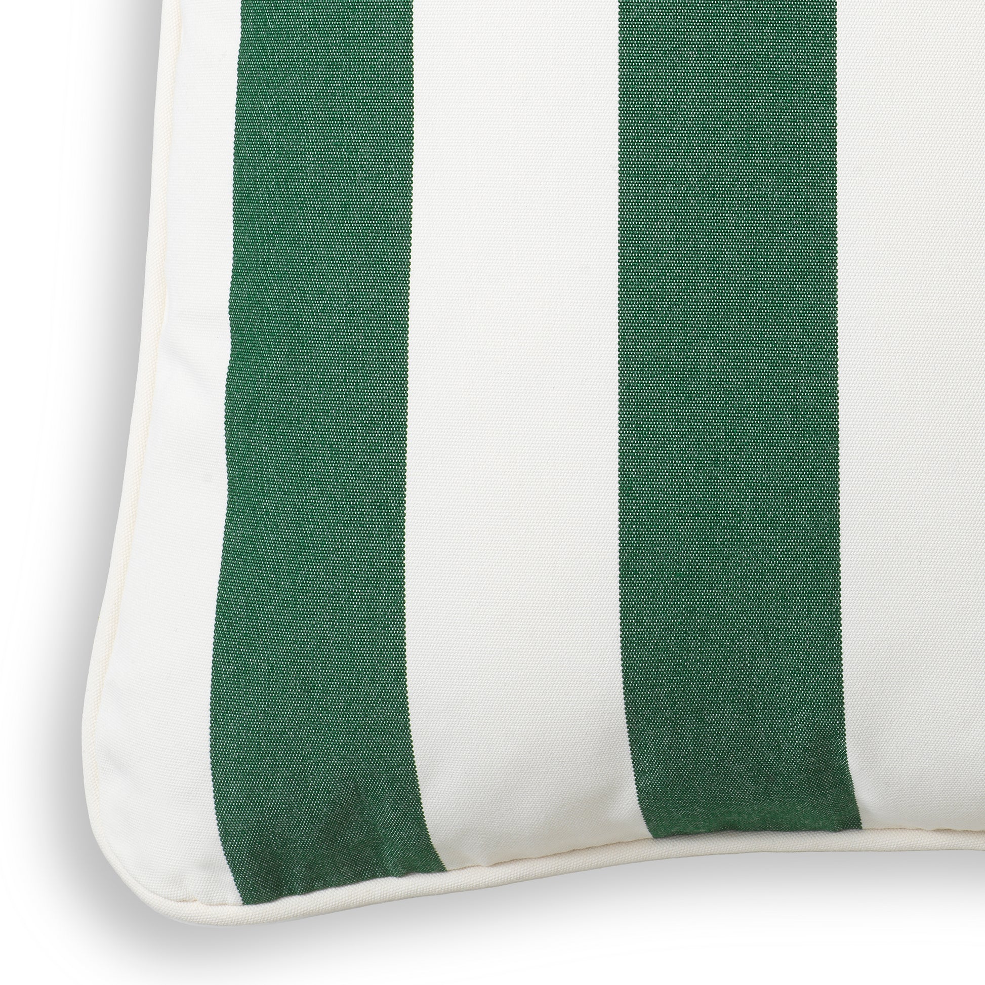 Denna dekorativa kudde från Eichholtz, som passar utmärkt på utomhusstolar, ger skön komfort. Den skumfyllda innerdynan ger mjuk dämpning, och det grönrandiga överdraget i canvas med kontrasterande passpoal tillför en distinkt och elegant stil. Tyget är noggrant framtaget med fokus på design och hållbarhet och är tåligt mot blekning och påfrestningar från solljus och kemikalier.