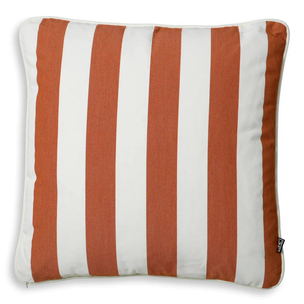 Denna dekorativa kudde från Eichholtz gör utomhusstolar bekvämare i trädgården eller på altanen. Den skumfyllda innerdynan ger mjuk dämpning, och det orange rostfärgade randiga överdraget i canvas med kontrasterande passpoal tillför en distinkt och elegant stil. Tyget är noggrant framtaget med fokus på design och hållbarhet och är tåligt mot blekning och påfrestningar från solljus och kemikalier.