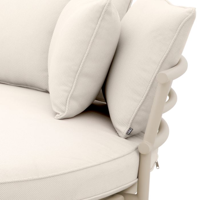 Upplev en ny nivå av utomhuskomfort och elegans med Soffa Laguno. Denna sofistikerade soffa är utformad för att förena stil med funktionalitet och skapa en inbjudande plats för avkoppling i din trädgård, poolmiljö eller på din uteplats. Med en behaglig sandfärg på stommen som för tankarna till avslappnade stranddagar och en klädsel i off-white/grått som ger en tidlös känsla av lyx, är denna soffa den perfekta kompletteringen till din utomhusmiljö och loungegrupp ute vid poolen eller verandan.