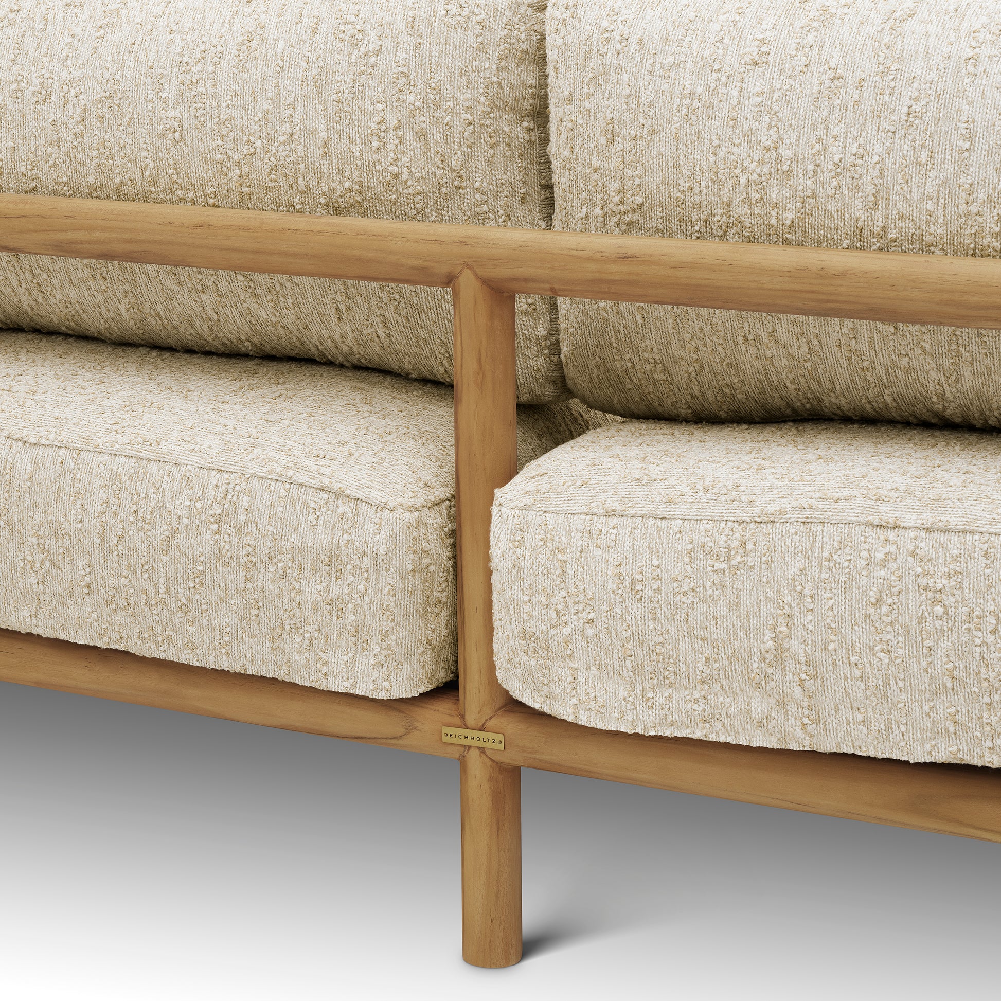 Utomhussoffan Ombria från Eichholtz förhöjer ditt uteutrymme med en varm ram i naturlig teak och Arden Natural-tyg. Den kompakta designen på 180 cm kombinerar stabil elegans med subtil sofistikation och bjuder in till avslappnad lyx. Soffan är tillverkad i tidlösa material som åldras vackert och lyfter alla stilfulla utomhusmiljöer med enkel, bestående charm.