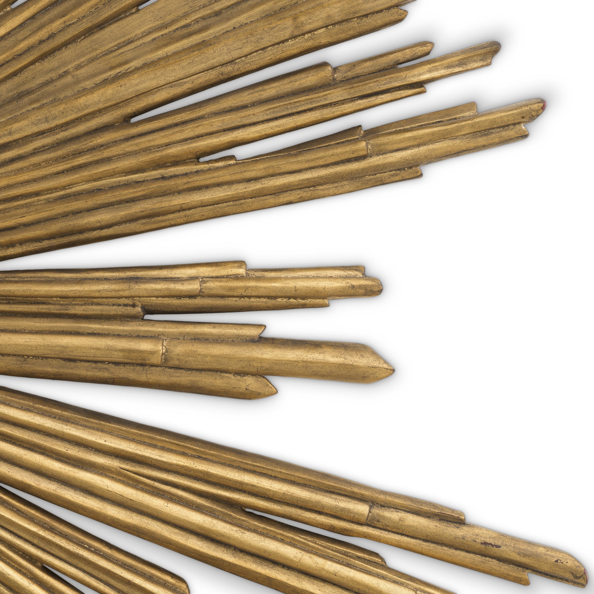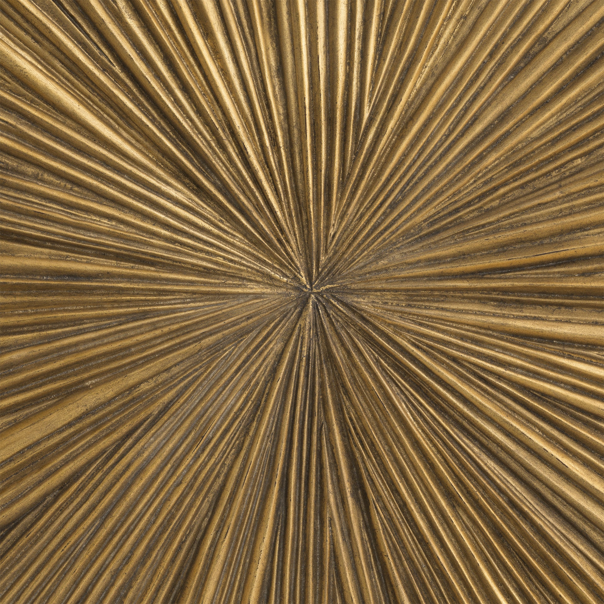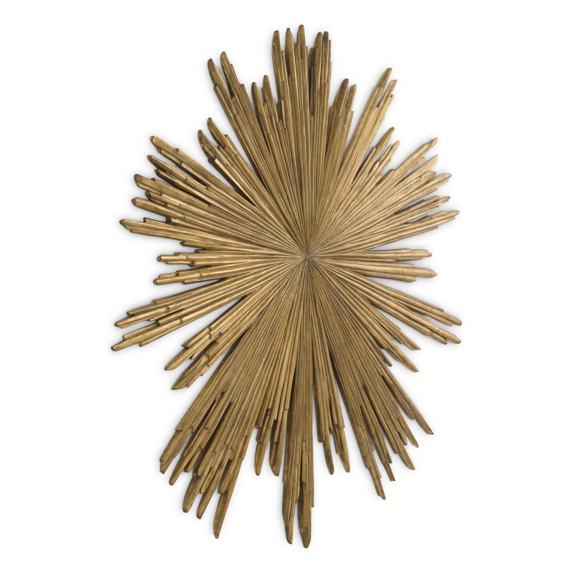 Väggdekoration Sunburst från Eichholtz förvandlar väggar med handskarvat trä täckt av skimrande antikguldfolie. Den strålande designen fångar solens glans och tillför rummet ett lyxigt metalliskt skimmer och skulpturalt djup.