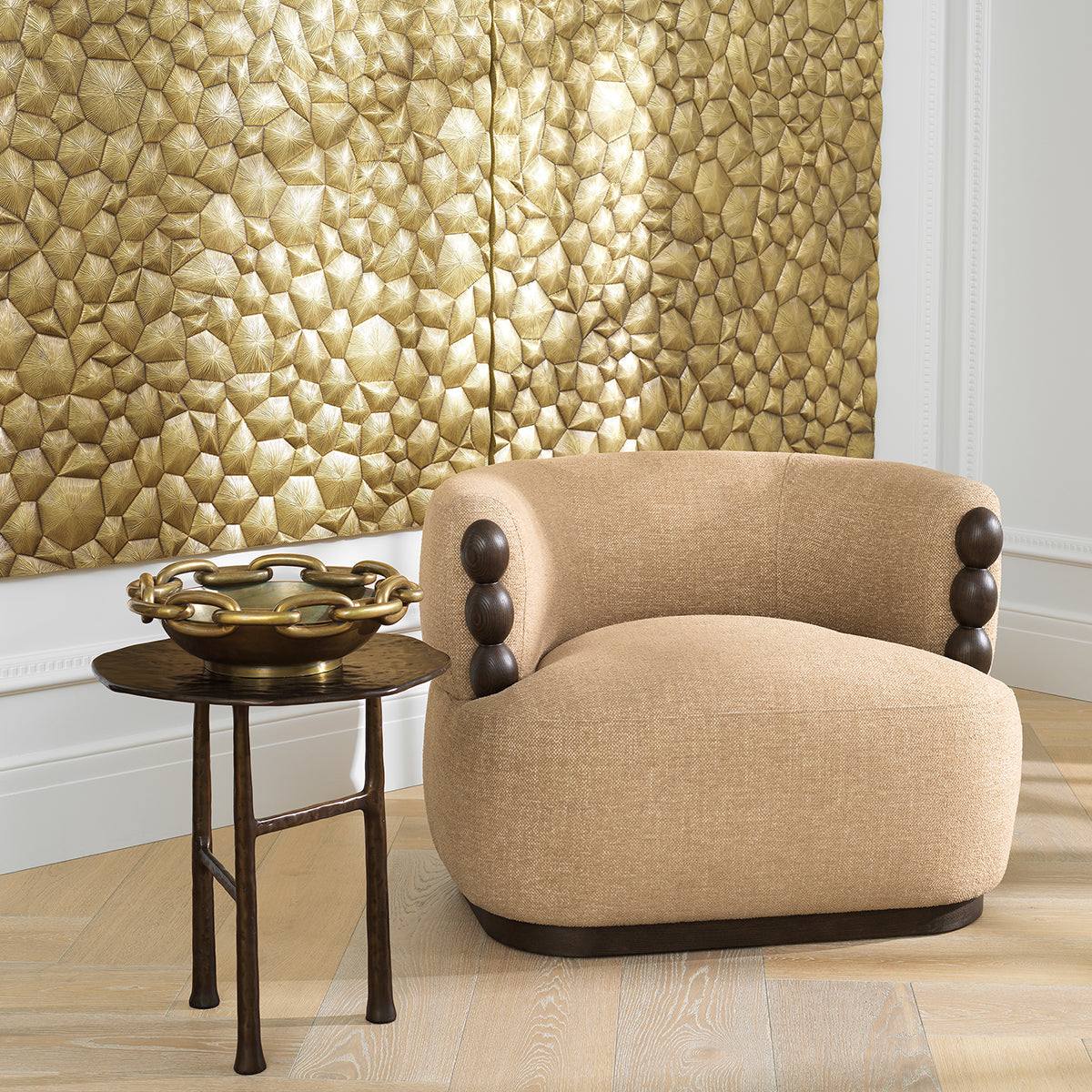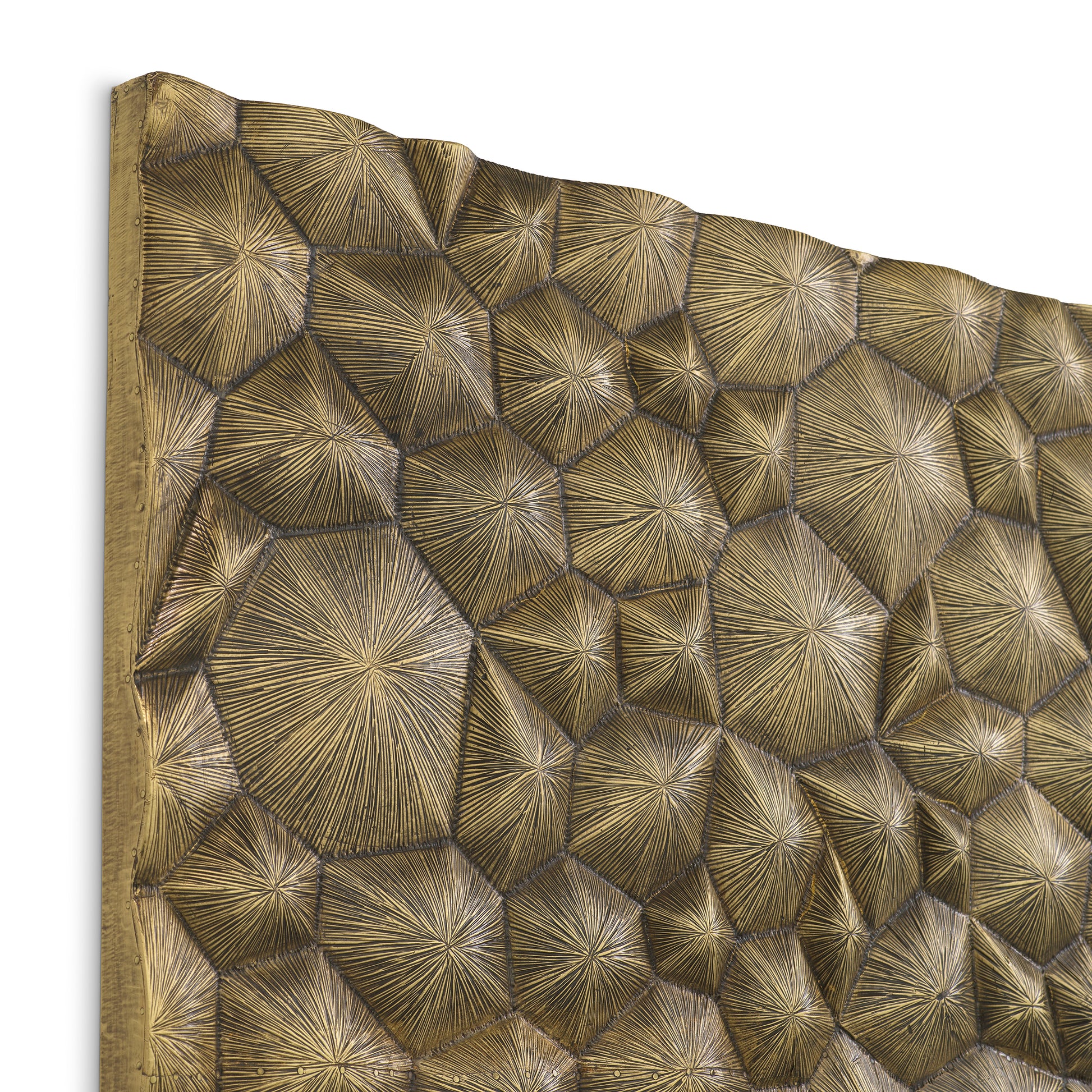Väggdekoration Ultimo från Eichholtz har en elegant yta i vintage-mässing som skapar en slående tredimensionell effekt. De varma, antika tonerna tillför djup och karaktär, vilket gör detta till ett skulpturalt statement som förhöjer varje sofistikerad interiör med exklusiv elegans.