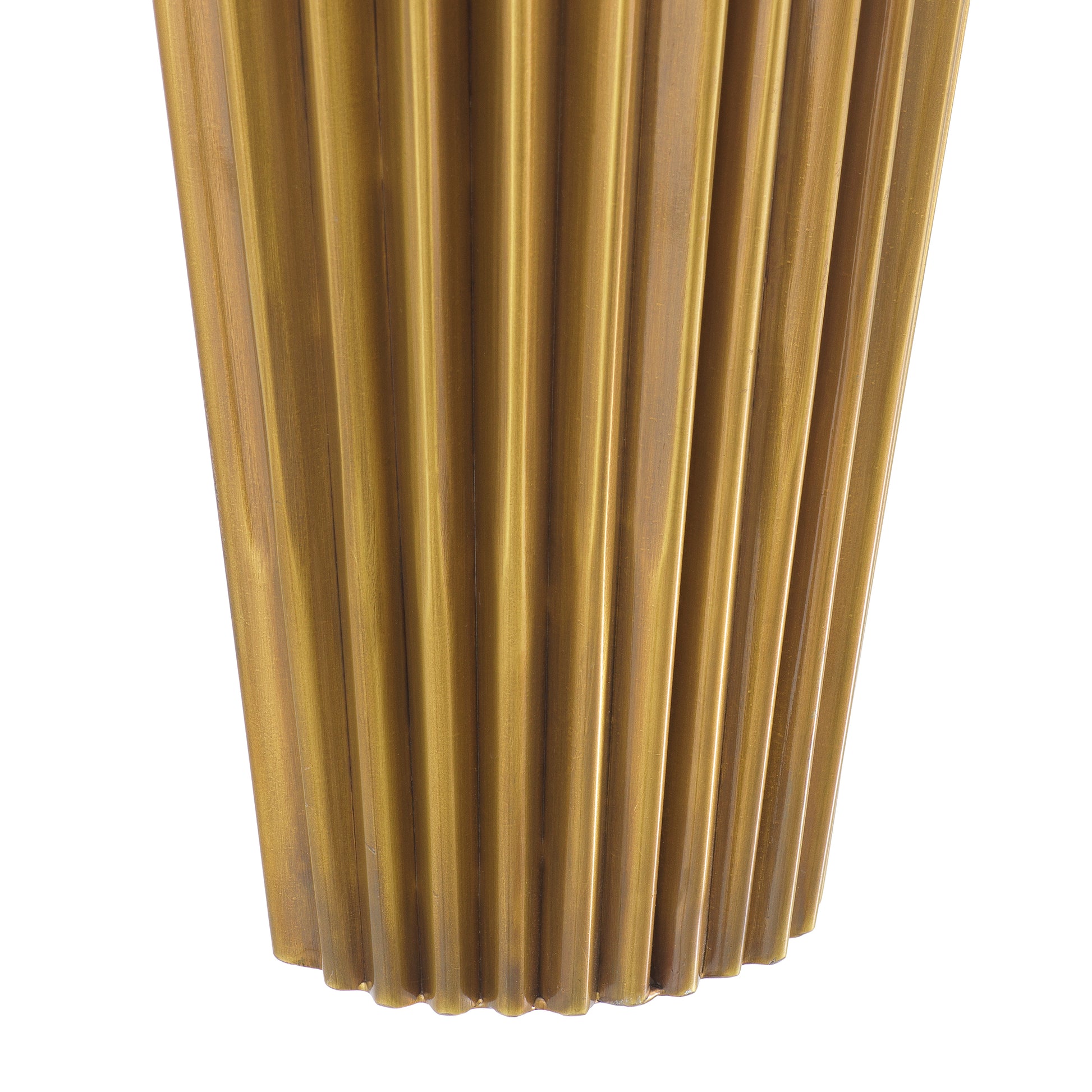 Designen är inspirerad av solens strålar och kombinerar dekorativ form med varm ljusspridning. Den är tillverkad med stor precision och har en vacker vintage mässingsfinish som ger rummet både karaktär och atmosfär.