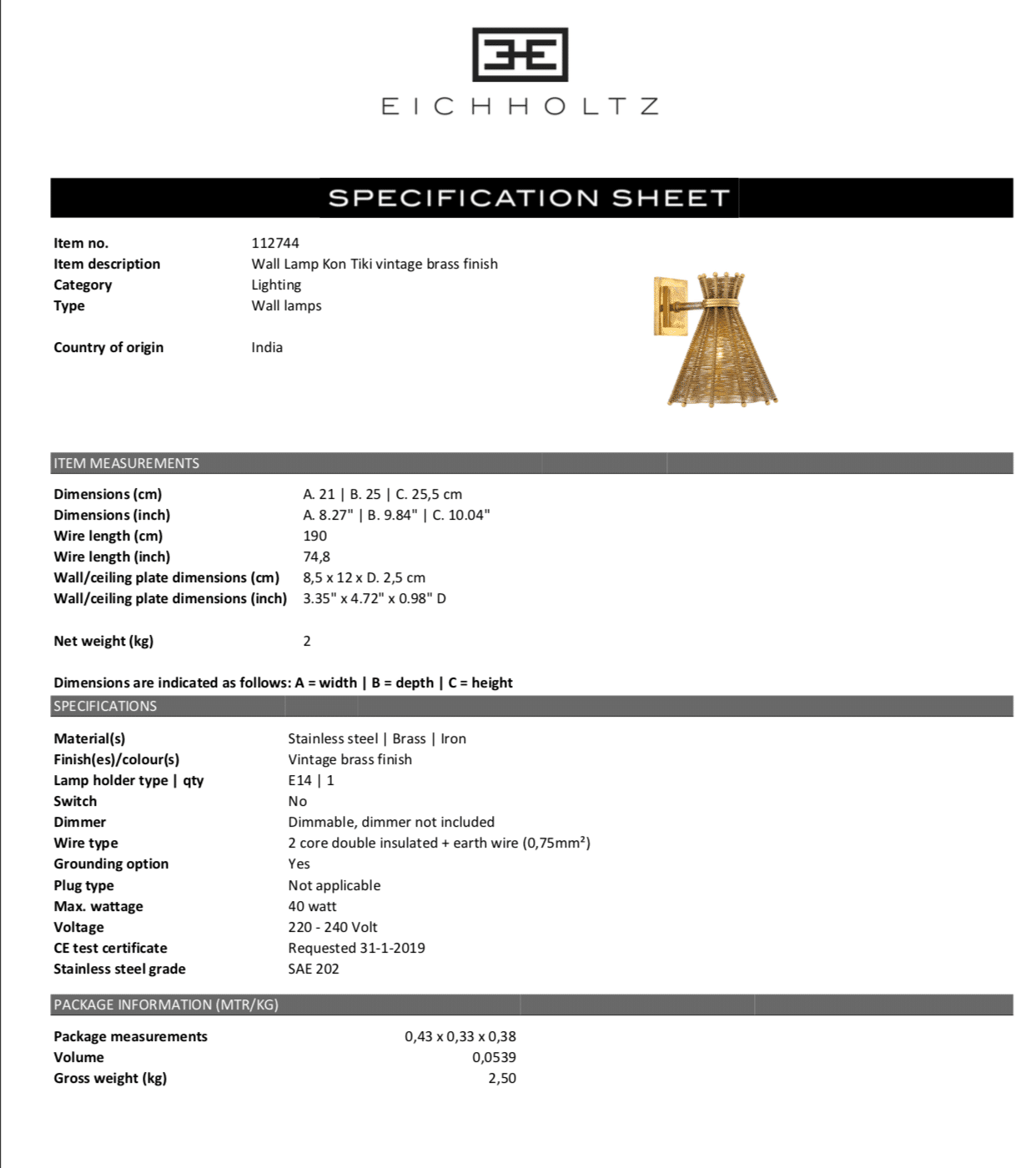 Wall Lamp Kon Tiki från Eichholtz. Läcker och iögonfallande vägglampa för den medvetna inredningen.