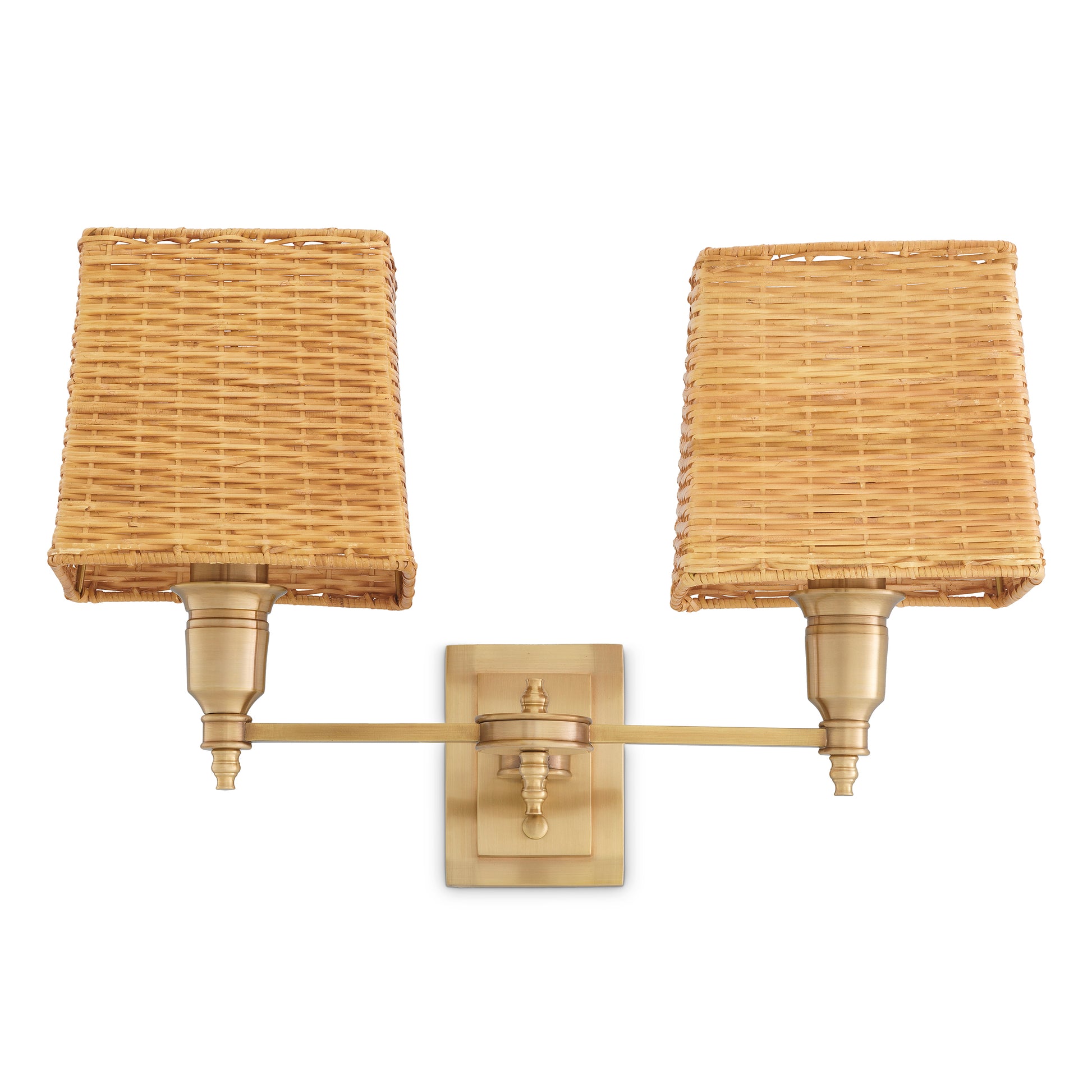 Vägglampa Lexington Double från Eichholtz förkroppsligar förfinad lyx med sin ram i antique brass-finish och lampskärmar i rotting som framhäver dess eleganta karaktär. Det varma metalliska skenet tillför en mjuk lyster som förhöjer sofistikerade interiörer med tidlös charm och diskret elegans.