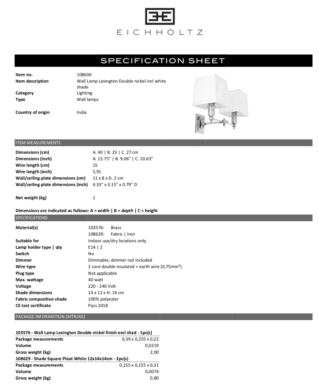 Wall Lamp Lexington Double från Eichholtz. En elegant och lyxig klassisk vägglampa med dubbla skärmar.