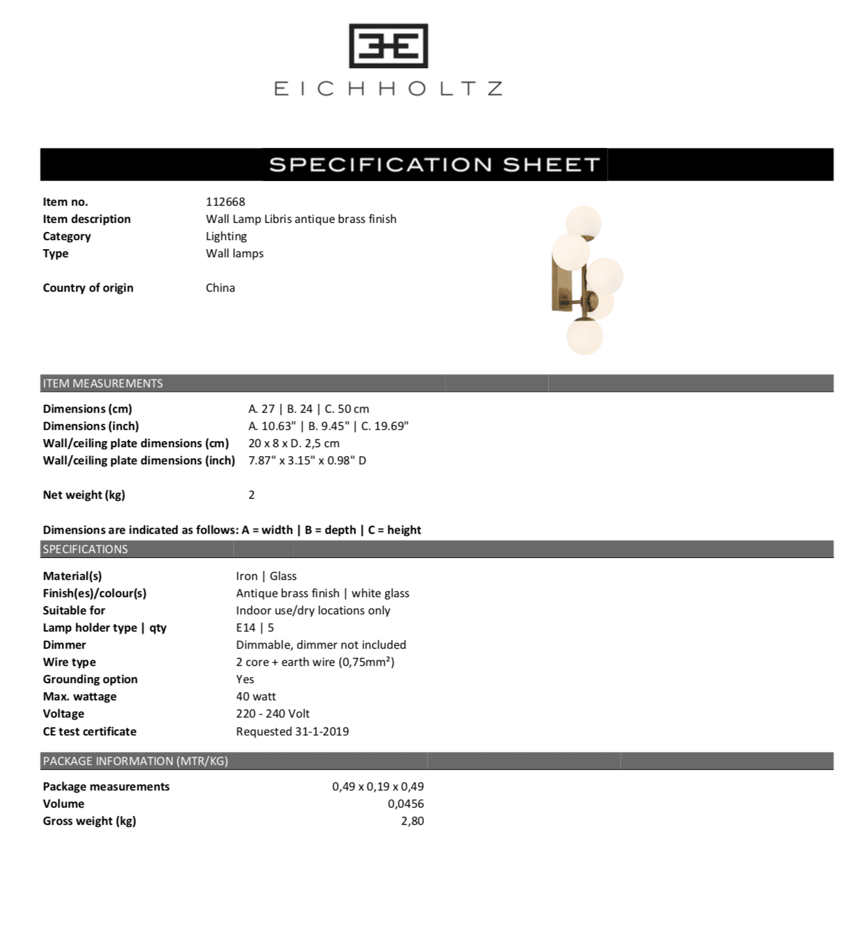 Wall Lamp Libris från Eichholtz. Läcker och snygg vägglampa med vitfärgade glaskupor.