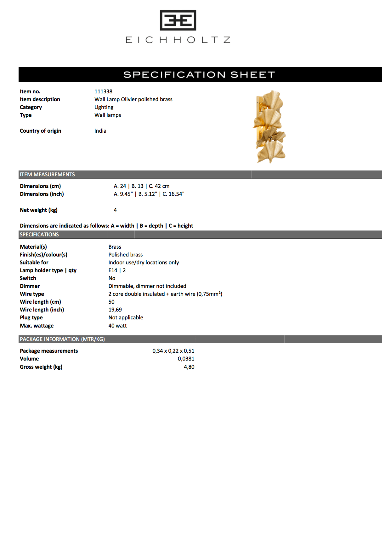 Wall Lamp Olivier från Eichholtz. Snygg och iögonfallande annorlunda lampa i polerad mässing.